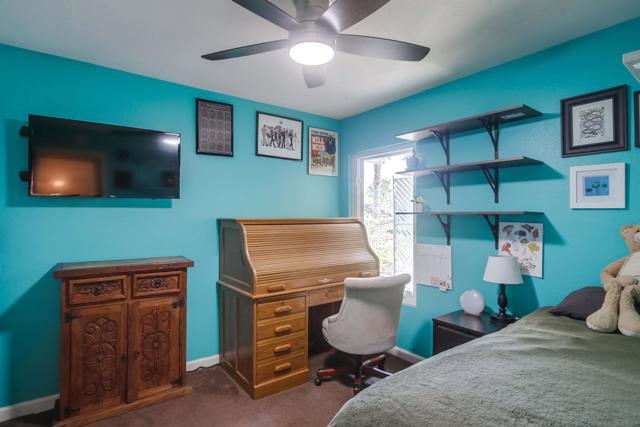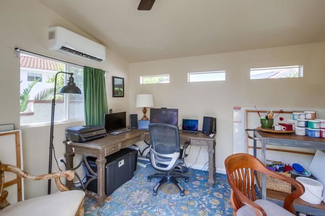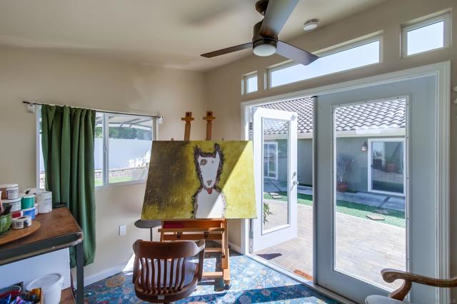 Located in the heart of Mira Mesa, this turn-key single story home has NEW exterior paint and an interior open floor plan with cozy living room and updated fireplace. Nice interior features include a Nest Thermostat, neutral paint, wood floors and window coverings throughout. Master bedroom features sliding glass door for access to the serenity of the back yard living space. A well manicured and fully fenced backyard with covered patio area is great for relaxing or entertaining guests; and a bonus fully finished art studio / work space. Home is conveniently located minutes from parks, top-rated schools, shopping centers, restaurants and entertainment. OWNED SOLAR!!!!