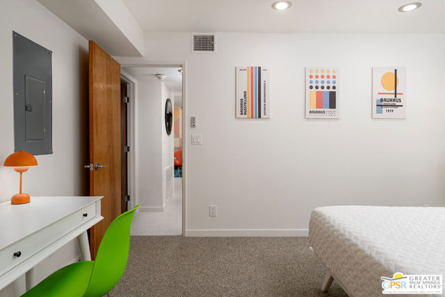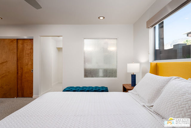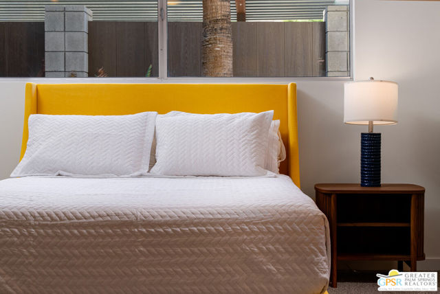 Immerse yourself in the quintessential Palm Springs lifestyle at Querencia Palms – where home is more than a place, it’s a feeling. This fully renovated 2-bedroom, 2-bath condo is the model unit of a newly released condo conversion, now available for the first time! Offering coveted Fee Simple ownership (not leased land), the home showcases terrazzo-inspired tile, sleek new carpet, vibrant mid-century inspired finishes, and playful wallpaper accents. The chef’s kitchen is equipped with stainless steel appliances, while modern upgrades include keyless smart lock entry with fingerprint access and in-unit laundry. Enjoy two private patios – one overlooking the courtyard and the other opening to your own section of the serene koi pond with flowing water features. Community amenities include a beach-entry resort-style pool and spa, outdoor BBQ and event space, three fire pits, a dog washing station and pet relief area, plus gated access with covered parking. Perfectly located in South Palm Springs – just steps from downtown, the CV Link, hiking trails, and dining. Querencia Palms blends style, comfort, and convenience with a true sense of community. A desert retreat designed for personality, charm, and well-being, so you can love where you live.