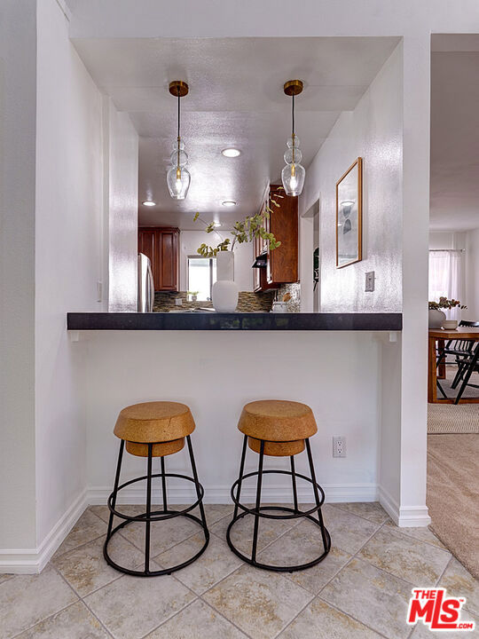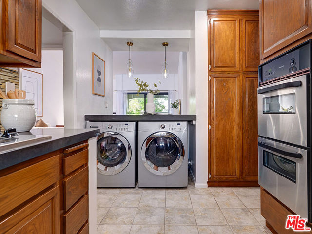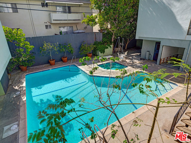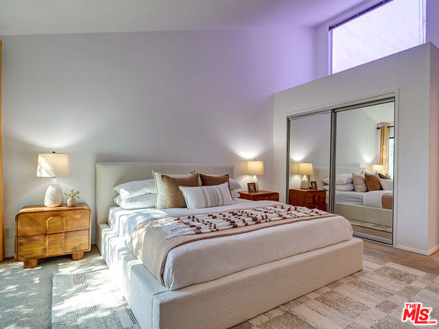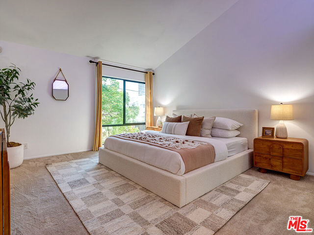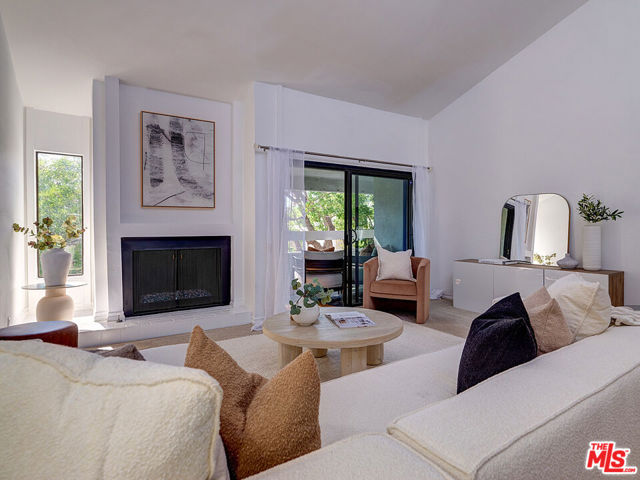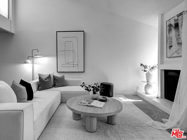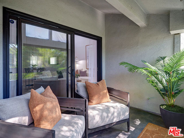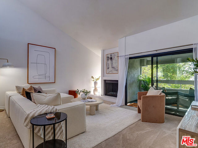 Welcome to sophisticated penthouse living in prime Westwood/Century City, where dramatic vaulted ceilings and expansive windows create a sun-drenched sanctuary with serene treetop views from your private balcony. This tastefully updated residence features a well-appointed kitchen with stainless steel appliances including rich oak cabinetry, sleek Caesarstone quartz countertops, and mosaic tile backsplash, plus a convenient laundry alcove with full-size front-loading washer and dryer. The open living and dining areas flow seamlessly around a cozy fireplace, perfect for both relaxed evenings and lively entertaining. The guest suite offers custom built-in shelving and large closets, with an adjacent updated bathroom featuring classic subway tile and modern fixtures. Your primary retreat boasts soaring ceilings, abundant natural light, an expansive walk-in closet, and a spa-like bathroom complete with dual-sink vanity, designer-tiled shower, and a separate soaking tub. Building amenities include a sparkling pool, spa, and top-floor sun deck. HOA dues include earthquake insurance, basic cable and broadband internet. Unit includes two tandem subterranean parking spaces and additional storage. With proximity to UCLA and Century City dining and shopping, easy freeway access, and zoning for highly-rated Westwood Charter Elementary, this turnkey home is the perfect blend of style, comfort, and luxury in one of LA’s most desirable neighborhoods.