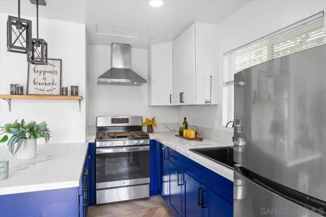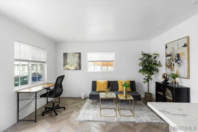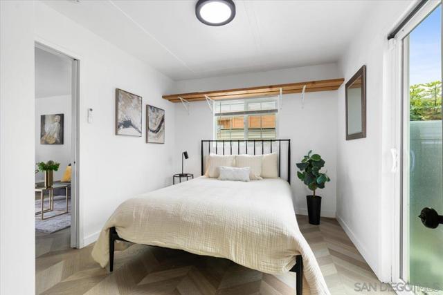 Charming, Private & Move-in ready! This private 1BD/1BA home is a rare find! Featuring modern chevron-pattern flooring, recessed lighting, and a sleek kitchen with stainless steel appliances and new cabinetry. The spa-like bathroom boasts floor-to-ceiling tile and Moroccan-pattern flooring. Enjoy your covered deck with included washer/dryer, plus upgrades like a new roof, windows, stucco, and driveway. Tucked away on a private lane near Kimball Park, schools, and shopping. Turnkey and ready to go.