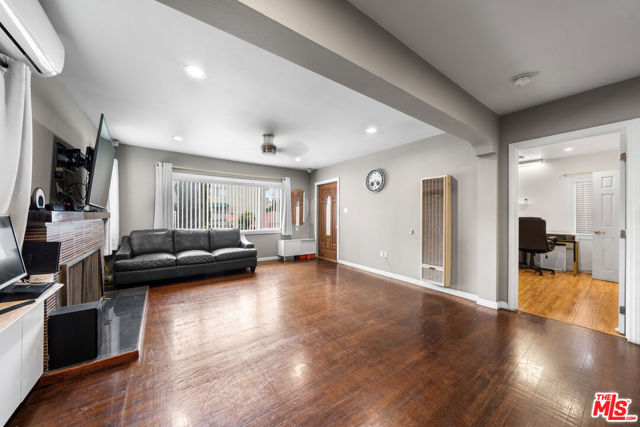 LOCATION! LOCATION! Spacious and updated 3BR/2BA, 1260SF home in a prime Los Angeles location, near USC, shopping, restaurants, and big markets with easy access to 101, 10, 5, and 110 FWY. Features include an open floor plan with hardwood floors, recessed lighting, and a cozy fireplace. The remodeled kitchen offers granite counters, stainless steel appliances, custom cabinetry, and breakfast bar. Primary suite includes walk-in closet, dual sinks, soaking tub. Additional highlights: front deck, private backyard with trees, washer/dryer, wall A/C units in all rooms, tankless water heater, dual pane windows, ceiling fans, reinforced foundation, copper plumbing, upgraded 100 AMP electrical, and CCTV security system. A separate rear entrance provides flexible use for a guest suite or rental opportunity. No parking on site. Move-in ready! Ideal for owner occupancy, rental income, or Airbnb investment!