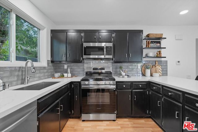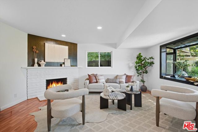 Welcome to 6172 Dalecrest Ave! This single-level home, tucked away on a quiet cul-de-sac, offers sweeping valley and mountain views. Its charming curb appeal, featuring a mature Jacaranda tree and front porch, welcomes you in and sets the stage for the perfect family home. Step inside to discover a light-filled interior with three bedrooms and two bathrooms. The primary suite boasts an oversized walk-in rainfall shower, dual quartz vanity, and generous closet space with a cozy sitting area – an ideal retreat to relax at the end of the day. The other two bedrooms enjoy stunning views and share a hallway bathroom with dual sinks and a bathtub. The living room, anchored by a fireplace, is brightened by a garden window, creating a warm and inviting space for gatherings. The kitchen is designed for both cooking and everyday living, featuring quartz countertops, subway tile, new stainless steel appliances, and a breakfast bar for casual meals. The dining area sits by French doors that open to a patio, perfect for alfresco dinners with city views and seamless indoor-outdoor entertaining. The backyard is equally inviting, with a grassy lawn, covered brick patio offering panoramic views, and a mature avocado tree perfect for quiet mornings or gatherings. Recent updates include a 2024 HVAC, dual-pane windows, fresh paint, insulation, new water heater, a Ring system, and more. An attached two-car garage provides convenient storage.Located just minutes from top-rated schools, parks, shopping, and dining, this move-in-ready home offers the ideal opportunity to enjoy the best of Woodland Hills living.