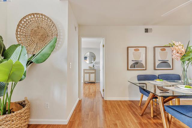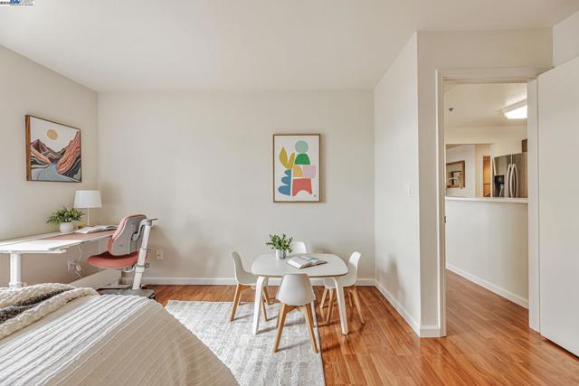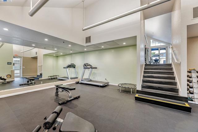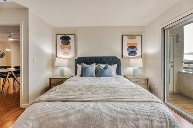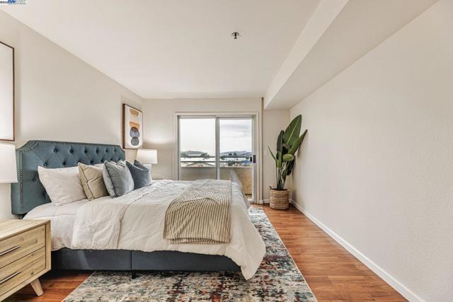 Welcome to your dream home in the desirable Bayside Commons! This top floor spacious 2-bedroom, 2-bathroom condo offers 1,170 square feet of beautifully designed living space, filled with natural light and soaring high ceilings that create an open, airy feel. Take in gorgeous, panoramic views of San Francisco and the iconic Golden Gate Bridge—a perfect backdrop for everyday living and unforgettable moments. During special events and holidays, enjoy front-row seats to spectacular fireworks shows by the bridge right from the comfort of your home. Both bedrooms are generously sized, ideal for relaxation or working from home. The open-concept living and dining areas make entertaining a breeze, and the well-appointed kitchen offers functionality and style. Community amenities include a sparkling swimming pool, well-equipped gym, tennis courts, and scenic walking trails just behind the property. Plus, enjoy lower HOA fees than other nearby communities—giving you luxury living without the extra cost. Don’t miss the chance to live in one of the East Bay’s most sought-after communities, where every day feels like a retreat.