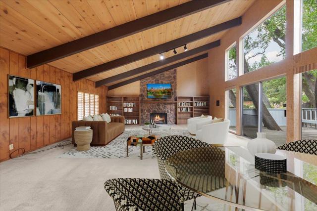 First time on the market lovingly maintained by the original owner, this legacy home is ready to carry its magic forward to the next generation. Nestled in Almaden Valleys coveted Country Club neighborhood, it combines architectural character with natural serenity. Vaulted wood-beamed ceilings, walls of glass, and expansive decks create a timeless connection to the outdoors. The grand foyer opens to a formal dining room with French doors, while the dramatic family/flex room showcases floor-to-ceiling windows, a massive stone fireplace, wet bar, and deck access. The chefs kitchen features granite counters, island grill, walk-in pantry, and casual dining with sliding doors to the lower deck. Bedrooms are thoughtfully set in the west wing, including a spacious primary suite with vaulted ceiling, private deck, and updated bath. A terraced backyard with pool, spa, and multiple entertaining areas is framed by wooded privacy. Minutes to trails, parks, Almaden Golf and Country Club, and top Almaden schoolsSimonds, Castillero, and Leland.
