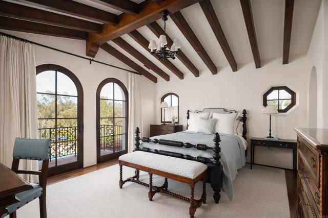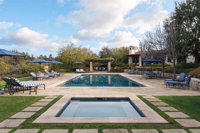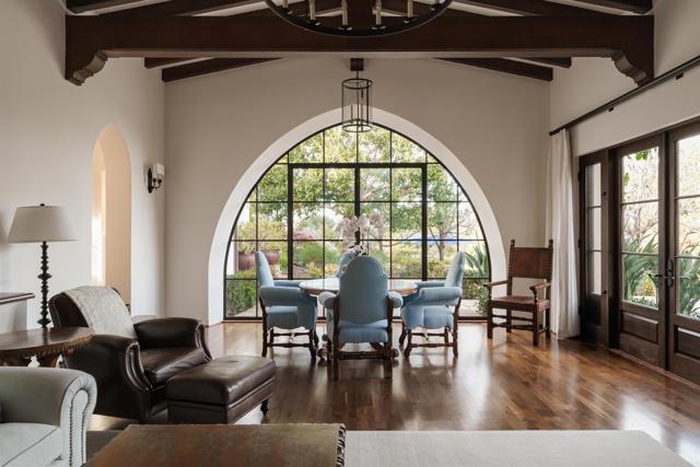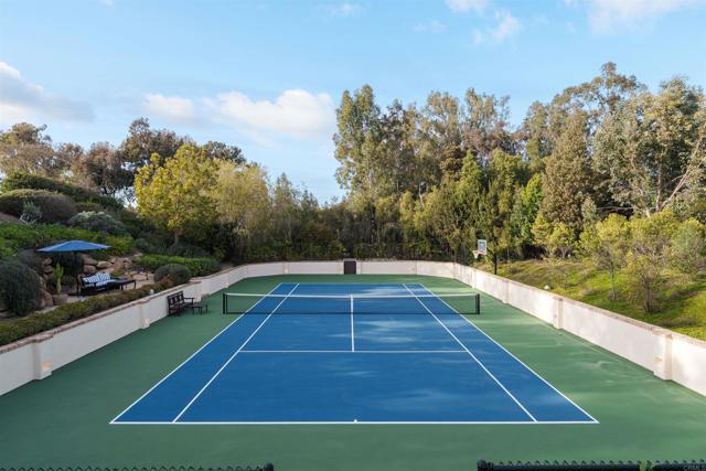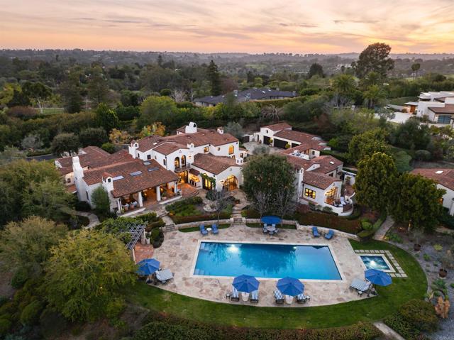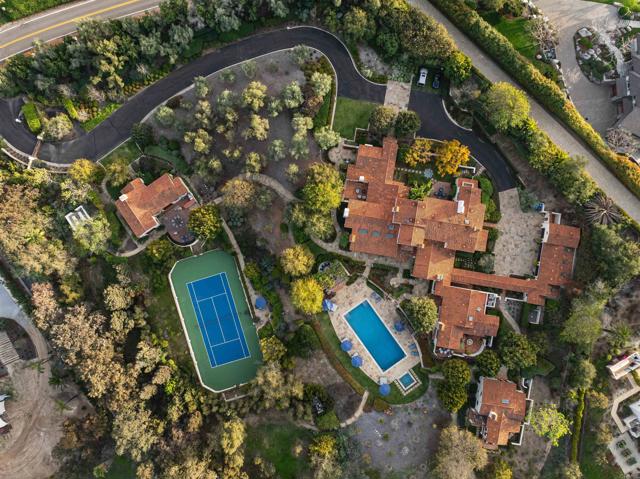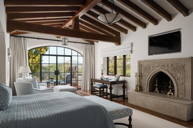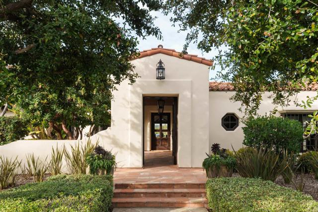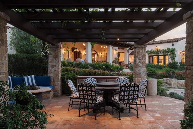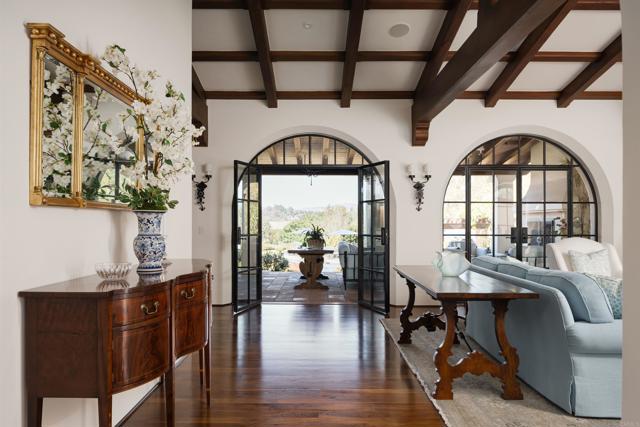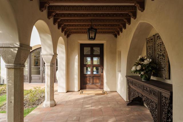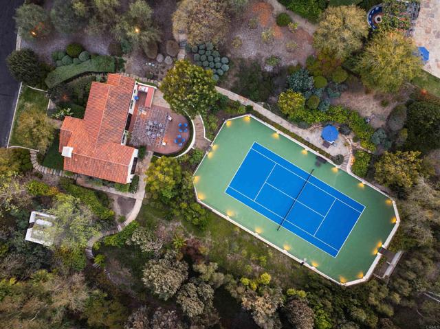 This extensively remodeled Covenant estate has been meticulously and professionally curated and updated in 2024 to present the ideal harmony of timeless craftsmanship and contemporary refinement. Re-imagined for modern living with uncompromising attention to detail, this Rancho Santa Fe residence perfectly blends high-end modern finishes with classic architectural design. From the moment you arrive, the understated gated entrance sets the tone of quiet luxury and seductive intimacy. Framed by exquisite landscapes designed by acclaimed landscape architect Theresa Clarke, this 5.69-acre estate was originally envisioned by renowned architect Andrew Wright and expertly realized by master builder Steve Sharratt. Designed to erase the boundaries between indoors and outdoors, the estate invites fresh coastal breezes and natural light into every corner. Inside, sunlight pours through soaring ceilings and iron doors, illuminating the home’s exquisite design and thoughtfully curated upgrades. Freshly refinished walnut floors exude warmth and character beneath hand-painted loggias and expertly restored antique and new custom light fixtures. In addition, all recessed ceiling lights have been replaced with new LED fixtures controlled by a new Vantage smart lighting system. Silk and linen Somfy motorized draperies and shades ensure unparalleled comfort, ambiance and privacy. In the heart of the home, the chef’s kitchen features a large, refinished Calcutta marble island, enhanced Esmeralda quartzite countertops, and a disappearing window that opens to a breathtaking courtyard with fountain. A temperature-controlled wine room, home theater ready space, snack bar and half bath elevate the lower level, creating a perfect setting for games and entertainment. Beyond the main residence, luxury extends to every part of the estate. Secluded within the lushly re-landscaped grounds, a guesthouse offers a peaceful bedroom with full well-appointed bath, full kitchen, laundry, loft and private patios, accommodating guests or extended family with ease. Throughout the home, hand painted Italian Talavera tile has been enhanced and new iconic STARK carpets grace the floors, tastefully selected and sourced from the finest materials. Additionally, a reverse osmosis water filtration system was installed providing purified water throughout the home. In Southern California the garage is an important feature of any home and the garage in this home is the result of thoughtful design and extensive renovation. The four-car garage features a new epoxy floor, new cabinets, new slat wall racking system and work bench. In addition, the newly repainted interior features a equipment storage area, a bonus room with cedar-lined closets and catering sink for party prep or flower arranging. Outdoors, the estate transforms into a private resort, reminiscent of a five-star wellness retreat designed for both movement and mindfulness. Enjoy endless days of relaxation in a sparkling resort-style pool, recently resurfaced with a mini marbleized pebble finish for a seamless underwater feel and upgraded with two new pool pumps for pristine performance. Restored flagstone paving guides you to a spacious pool deck and pergola, where the stunning Michael Taylor outdoor furniture has been newly powder coated and repainted. In addition to new umbrellas, the lounge chairs and built-in seating around the fire-pit were re-cushioned and re-upholstered. For those who embrace an active lifestyle, this property offers unparalleled amenities. Start your day with a morning match on the newly resurfaced tennis court or enjoy an afternoon workout in the upgraded tennis and gym pavilion — complete with a wet bar, two half baths, a new HVAC system, and a new outdoor barbeque station with under-counter refrigerator. The home features cutting-edge smart security and alarm systems, along with new underground fiber-optic communication and TV infrastructure for unparalleled connectivity.