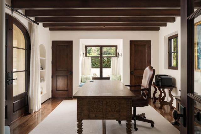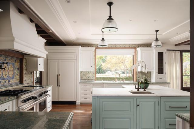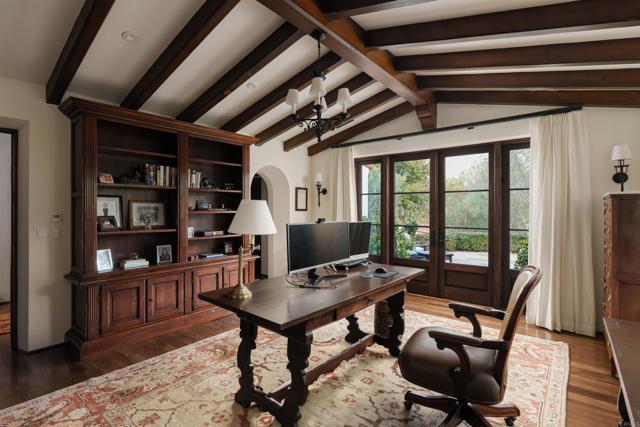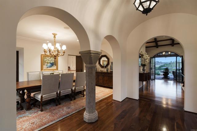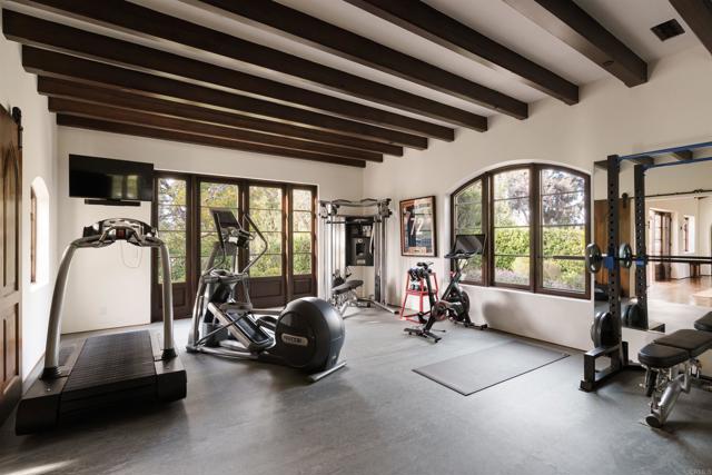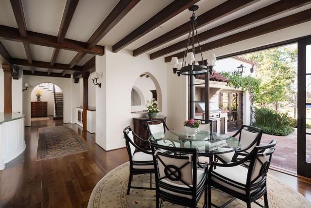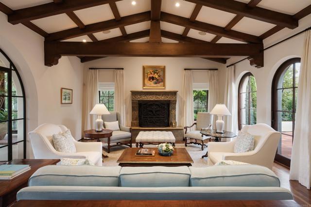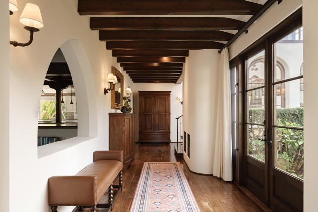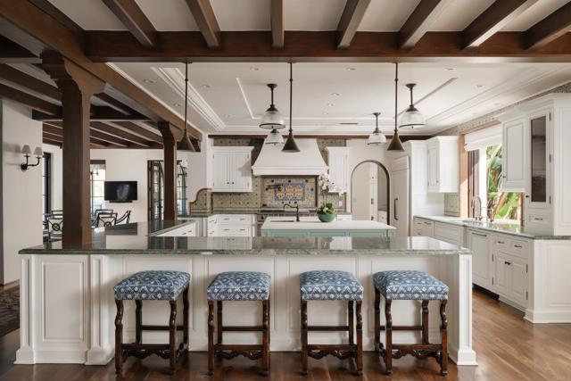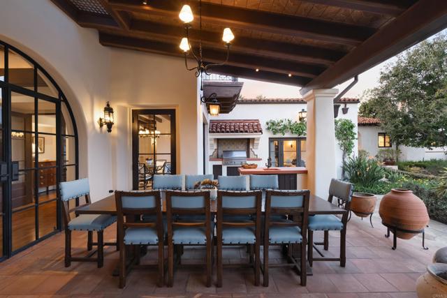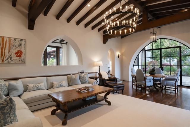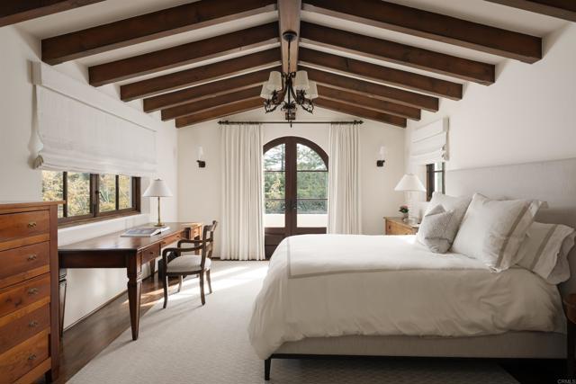 This extensively remodeled Covenant estate has been meticulously and professionally curated and updated in 2024 to present the ideal harmony of timeless craftsmanship and contemporary refinement. Re-imagined for modern living with uncompromising attention to detail, this Rancho Santa Fe residence perfectly blends high-end modern finishes with classic architectural design. From the moment you arrive, the understated gated entrance sets the tone of quiet luxury and seductive intimacy. Framed by exquisite landscapes designed by acclaimed landscape architect Theresa Clarke, this 5.69-acre estate was originally envisioned by renowned architect Andrew Wright and expertly realized by master builder Steve Sharratt. Designed to erase the boundaries between indoors and outdoors, the estate invites fresh coastal breezes and natural light into every corner. Inside, sunlight pours through soaring ceilings and iron doors, illuminating the home’s exquisite design and thoughtfully curated upgrades. Freshly refinished walnut floors exude warmth and character beneath hand-painted loggias and expertly restored antique and new custom light fixtures. In addition, all recessed ceiling lights have been replaced with new LED fixtures controlled by a new Vantage smart lighting system. Silk and linen Somfy motorized draperies and shades ensure unparalleled comfort, ambiance and privacy. In the heart of the home, the chef’s kitchen features a large, refinished Calcutta marble island, enhanced Esmeralda quartzite countertops, and a disappearing window that opens to a breathtaking courtyard with fountain. A temperature-controlled wine room, home theater ready space, snack bar and half bath elevate the lower level, creating a perfect setting for games and entertainment. Beyond the main residence, luxury extends to every part of the estate. Secluded within the lushly re-landscaped grounds, a guesthouse offers a peaceful bedroom with full well-appointed bath, full kitchen, laundry, loft and private patios, accommodating guests or extended family with ease. Throughout the home, hand painted Italian Talavera tile has been enhanced and new iconic STARK carpets grace the floors, tastefully selected and sourced from the finest materials. Additionally, a reverse osmosis water filtration system was installed providing purified water throughout the home. In Southern California the garage is an important feature of any home and the garage in this home is the result of thoughtful design and extensive renovation. The four-car garage features a new epoxy floor, new cabinets, new slat wall racking system and work bench. In addition, the newly repainted interior features a equipment storage area, a bonus room with cedar-lined closets and catering sink for party prep or flower arranging. Outdoors, the estate transforms into a private resort, reminiscent of a five-star wellness retreat designed for both movement and mindfulness. Enjoy endless days of relaxation in a sparkling resort-style pool, recently resurfaced with a mini marbleized pebble finish for a seamless underwater feel and upgraded with two new pool pumps for pristine performance. Restored flagstone paving guides you to a spacious pool deck and pergola, where the stunning Michael Taylor outdoor furniture has been newly powder coated and repainted. In addition to new umbrellas, the lounge chairs and built-in seating around the fire-pit were re-cushioned and re-upholstered. For those who embrace an active lifestyle, this property offers unparalleled amenities. Start your day with a morning match on the newly resurfaced tennis court or enjoy an afternoon workout in the upgraded tennis and gym pavilion — complete with a wet bar, two half baths, a new HVAC system, and a new outdoor barbeque station with under-counter refrigerator. The home features cutting-edge smart security and alarm systems, along with new underground fiber-optic communication and TV infrastructure for unparalleled connectivity.