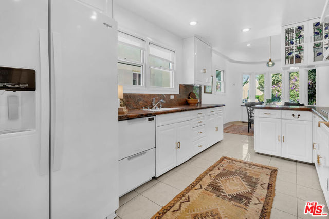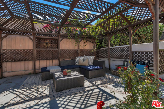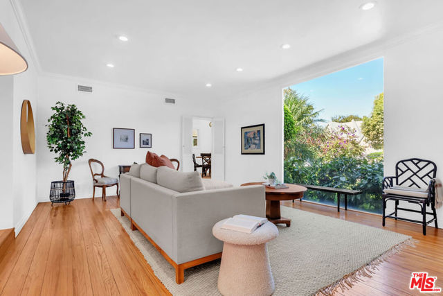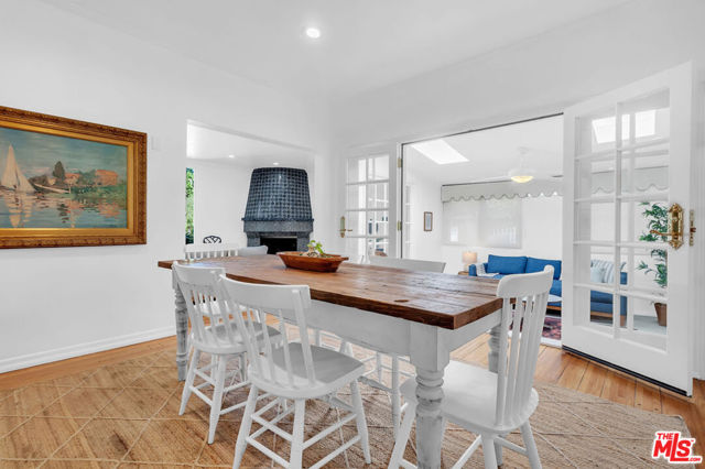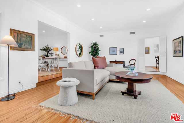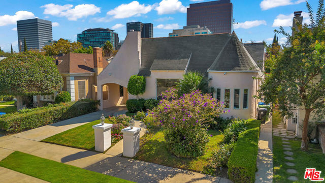 BEAUTIFUL FRENCH NORMANDY IN BEVERLY GROVE. This wonderful home features gleaming hardwood floors, an expansive, step-up living room with picture window and stylish corner fireplace, a formal dining room, three generous bedrooms including an en suite primary with walk-in closet, soaking spa tub, double sinks and separate shower, a second remodeled full bath and one powder room, a redone kitchen with rotunda breakfast room, and an enclosed bonus sunroom. The spacious, fully enclosed backyard offers a large gazebo and dining patio, and a nicely finished garage with full bath. Additional features include central AC, ample closet and storage space, and an ideal location in very close proximity to L.A.’s best shopping and dining, on Third Street, The Grove, West Hollywood and Beverly Hills.
