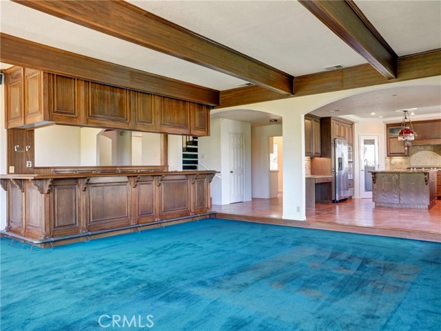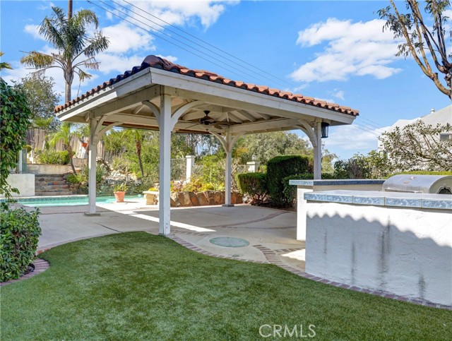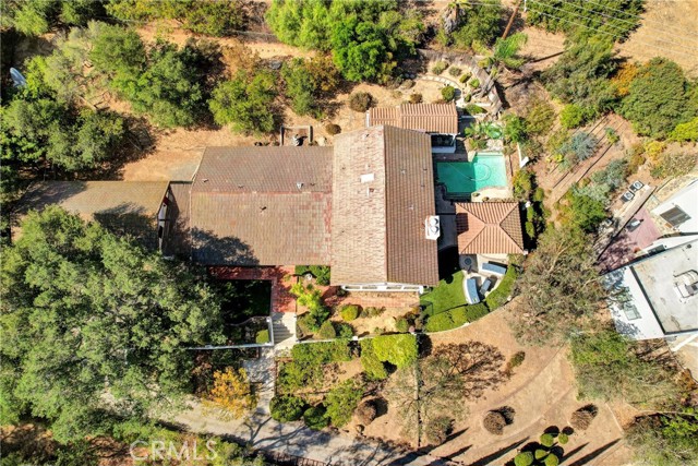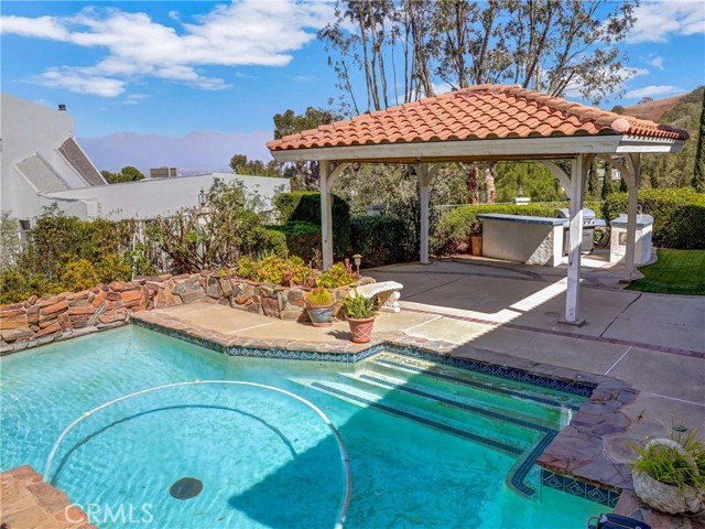 Canyon Living at its best. This home will give its owner the feel of living miles away from city life, yet only short drive to The Shoppes at Chino Hills, or the OC area of Brea. Freeway access to 60, 71, or 57 minutes away as well. This home offers 2 bedrooms downstairs with a shared full bath, large closets, one bedroom has direct access to the bathroom. Bath has separate tub and shower. Large entry into home is open to the formal living area with large window to rear yard. Turn to the right and down 2 steps where you will see out the slider that gives access to the pool/spa area with rock waterfall, multiple covered areas to entertain your guests. Kitchen has an abundance of storage, stainless appliances that include a 5-burner cooktop, side by side refrigerator, built in oven and microwave, dishwasher, trash compactor, at the kitchen sink is a view of the pool and distant mountains. The kitchen has seating at the large granite island as well as room for dining table. This area opens to a very large great room with fireplace, large windows to see the views. For those friends and family parties there is a large saloon style wet bar with plenty of seating, storage, bar fridge and opens to both the great room and formal dining area. Small hall gives access to a 1/2 bath conveniently located next to huge laundry room that has access to the yard and pool. Upstairs is the primary suite, walk-in closet, additional closet with sliding doors, separate tub/shower in bath. The primary has views of the mountains from the large windows as well as a private balcony with views of the Hills, fireplace with marble hearth and surround. Secondary bedroom has attached bath with standup shower, walk in closet, private balcony, large picture windows with views of mountains. Large oak trees give plenty of shade, 4 car garage for toys or set up a workshop. This is a house you can make your home.