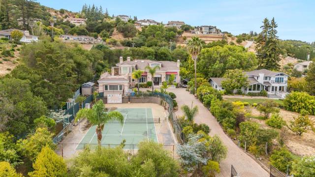 Welcome to 11631 Upland Way, a remarkable estate located in the prestigious Cupertino Upland neighborhood. This six bedroom residence with seven full and two half bathrooms offers more than eight thousand square feet of custom living space and was originally built in 2003 with outstanding craftsmanship and thoughtful design. The home sits on a eight-tenths of an acre lot that provides sweeping valley views while also offering a flat layout ideal for outdoor amenities including a full sized tennis court in the front yard and a large swimming pool in the backyard. The property also carries development potential as the lot may be subdivided into two parcels, allowing for the construction of an additional residence while still maintaining the existing estate. Inside the home, the expansive primary suite features a spa inspired bathroom with a steam shower, while all bedrooms are equipped with ensuite baths and custom built ins. Additional amenities include a fifteen by twenty four foot home theater, a six person sauna, three fireplaces, four wet bars, two laundry rooms, a game room, meditation room, exercise room and a recreational room with pool table.