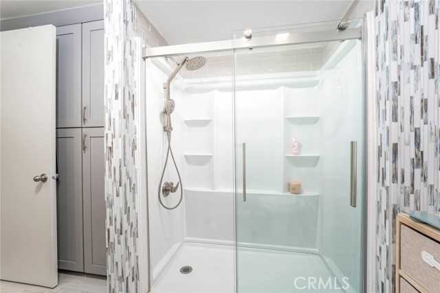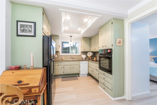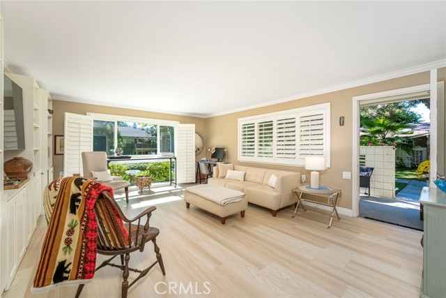 This is absolutely stunning! Totally remodeled and fabulous location on the serpentine walk very quiet and peaceful, NO Stairs and close to parking. 1 bedroom, 1 bath open floorplan. The kitchen is a chef’s dream updated and open to dining room and living room. Living room is large and very light and bright with huge picture window of a beautiful green belt and the entertainment system is included! The Bedroom is spacious with a large closet. The bath is updated with walk in shower and updated vanity. There is luxury vinal flooring and double pane windows through out, scraped ceilings and very nicely updated through out. The peaceful patio is great for relaxing or entertaining.rnLocated in the heart of Laguna Woods, this home offers premier 55+ living at it finest with access to world-class amenities including golf courses, driving range, putting greens, fitness centers, swimming pools, art, sewing, photography and wood working studios, tennis courts, pickle ball, Horace trails & stables, bocce ball, archery range, lawn bowling, billiards room, golf kart paths throughout, garden areas, private RV parking, amphitheater, Restaurant with a fabulous view and many social clubs to name a few! Conveniently located near stores, Restaurants, freeways and Beaches. Don’t miss this wonderful opportunity to call this home.