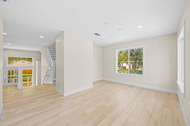 Fully RENOVATED property. This end-unit has unparalleled convenience & tranquility. With no rear neighbors on 3 sides, you’ll enjoy a serene living experience. Entering, you’ll be greeted by a decorative foyer with beautiful tiles. The high ceiling creates openness that is complemented with plenty of natural lights.The designer flooring throughout the property creates uniformity. The kitchen, nook, family room, and formal dining areas are thoughtfully separated, providing ample space for relaxation & entertainment. The gourmet kitchen is a highlight, featuring a farmhouse sink, upgraded faucet, quartz countertops & backsplashes, & sleek new LG brand stainless-steel appliances. Recessed lighting in the property can be adjusted to a soft, warm glow, creating a cozy ambiance. A stunning electric fireplace with multiple color settings adds a touch of sophistication to the living room. The primary bedroom is a serene retreat, nestled in a private location & peaceful. This tranquil oasis opens to the inviting pool view & trees, perfect for privacy & relaxation.The pièce of resistance is the stunning shower area, complete with a cozy niche & comfortable bench. The crowning glory is the gorgeous barn door, which adds a rustic charm.