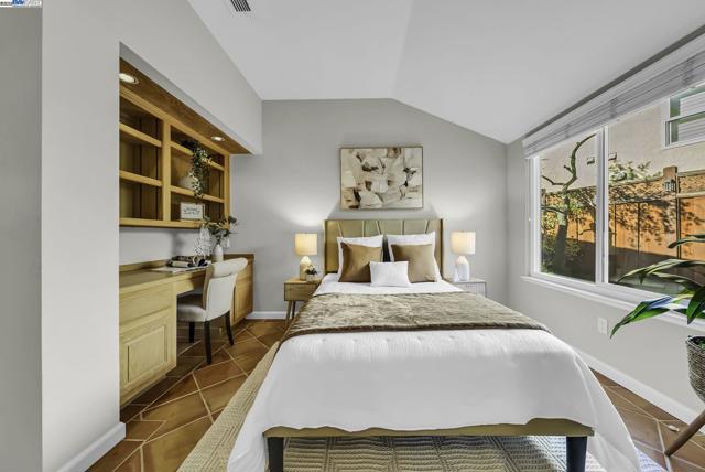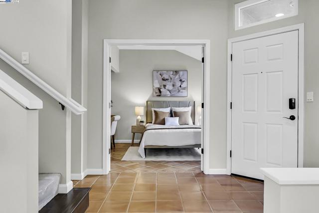Welcome to your serene oasis in the highly sought-after Canyon Lakes gated community of San Ramon! Nestled on a quiet court, this stunning single-family home combines comfort, style, & resort-like amenities. Step inside to soaring ceilings, a cozy fireplace, & an inviting living room, dining room combo area filled with natural light. The beautifully updated eat-in kitchen boasts updated appliances, lots of cabinets & plenty of space for casual dining. The main level also features a versatile bedroom & a full bath, laundry area, & an attached two-car garage with extra storage. Newer Roof with Solar that is paid for. Upstairs, you’ll find two spacious suites: a junior suite with its own private bath, & a sunlit primary retreat with generous closets and a luxuriously recently remodeled beautiful ensuite showcasing dual vanities & an oversized spa-like shower. Enjoy effortless indoor-outdoor living with a private backyard—perfect for dining & relaxation plus front patio courtyard. Community amenities, low HOA $260, includes 24-hour manned security gate, sparkling pools, tennis & pickleball courts, a picturesque lake & walking paths. All of this within minutes to award-winning schools, parks, golf & country clubs, shopping, dining, & easy access to 680/580 and BART.
