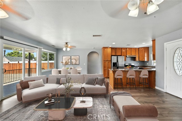 Welcome to this spacious home located in the heart of Hemet. This property offers 3 bedrooms, 2 bathrooms, plus a bonus bedroom. The open-concept floor plan features a large living room that flows into the dining area and kitchen. The kitchen provides ample cabinet space and functionality for everyday use. The bedrooms are generously sized, and the home is equipped with central air conditioning and heating. A sliding glass door leads to the backyard, offering plenty of space for outdoor activities and entertaining. Additional improvements include recent interior and exterior paint, giving the home a fresh and updated appearance. This move-in-ready home combines space, comfort, and convenience—an excellent opportunity for buyers seeking a well-maintained property in Hemet.
