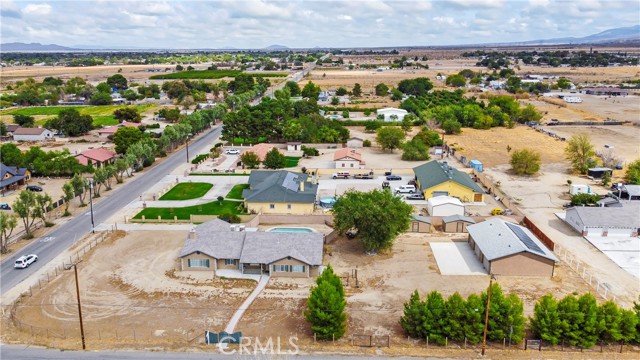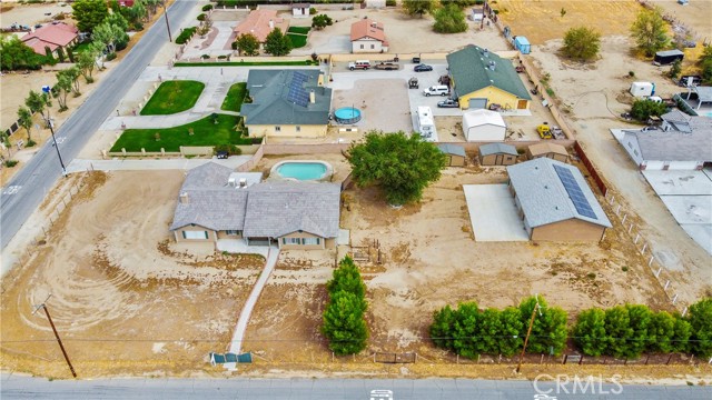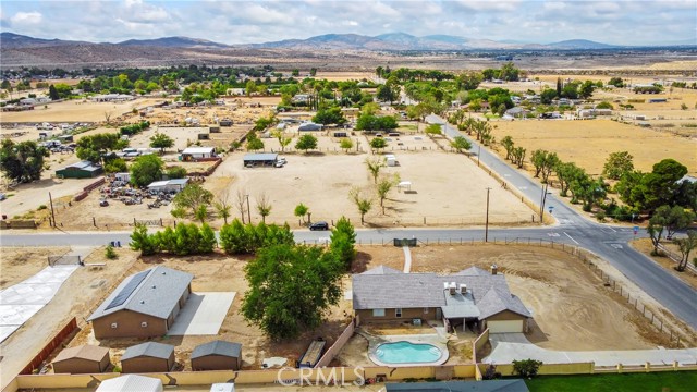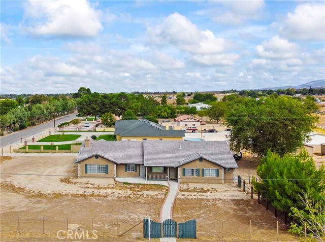Priced to Sell!! Amazing Value! Step into your own private retreat on a full acre corner lot. This single-story ranch home delivers over 2,500 square feet of comfortable living with a layout designed for both everyday living and entertaining. Inside you’ll find a spacious family room with soaring ceilings and a brick-accented wood-burning stove that anchors the space with warmth and character. The kitchen is the heart of the home, showcasing a huge center island with breakfast bar seating, an oversized pantry, upgraded flooring, and an abundance of cabinetry for storage. A separate formal living area and two additional flex rooms provide ideal space for a home office, playroom, or creative studio. The primary suite is a true retreat with crown molding, a generous walk-in closet, and a private bath featuring a separate shower and a jetted soaking tub. Additional highlights include a Jack-and-Jill bathroom, indoor laundry with utility sink, and a large attic space with pull-down access leading to a hidden bonus room. Outdoors, enjoy a backyard designed for fun and relaxation—complete with an inground pool, covered patio, built-in BBQ station, and block wall privacy fencing. Three large storage sheds add even more functionality. A major bonus to this property is the paid solar system, keeping energy costs nearly nonexistent, plus a three-car attached garage. But the showstopper is the massive 2,847 sq ft detached garage/workshop (built in 2017)—featuring two roll-up doors, its own half bath with septic, bar area with sink, evaporative cooling, ceiling fans, and a built-in air compressor. Perfect for car enthusiasts, hobbyists, or even a future ADU conversion. Tucked away in a quiet, established neighborhood just off Pearblossom Hwy, this one-of-a-kind estate has the space, amenities, and flexibility you’ve been searching for.