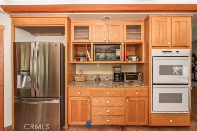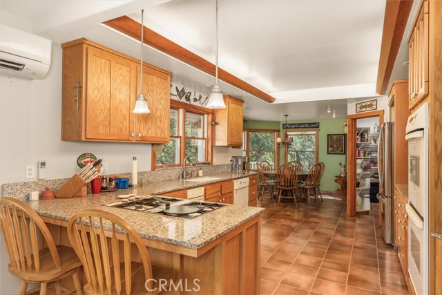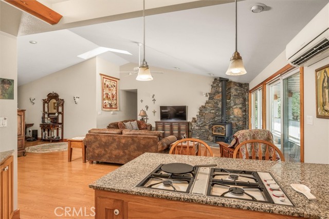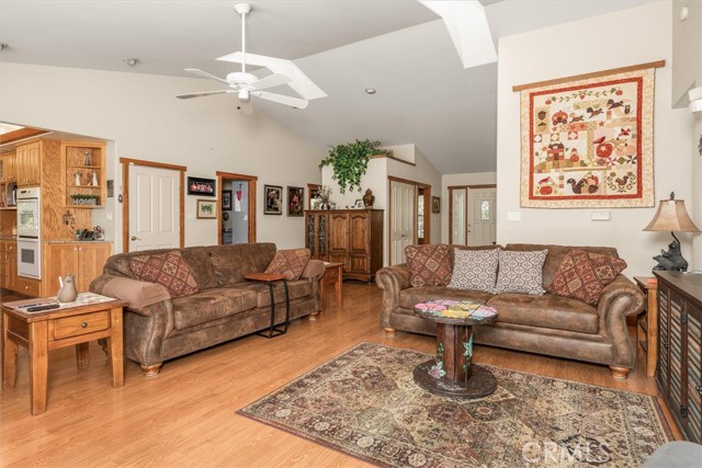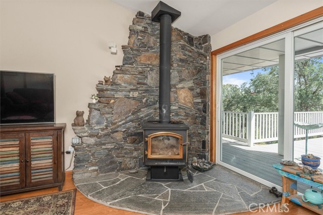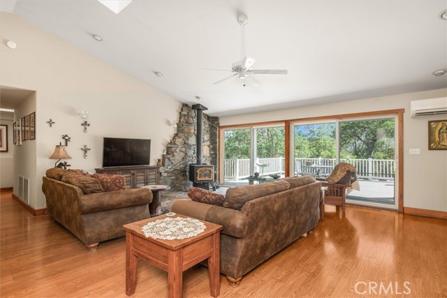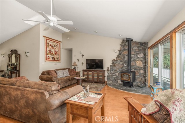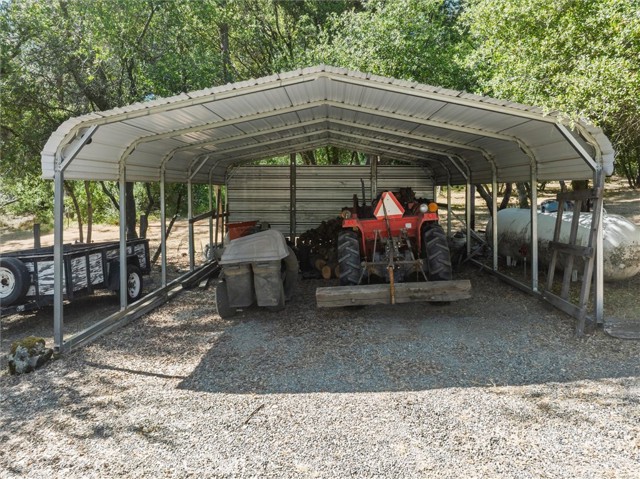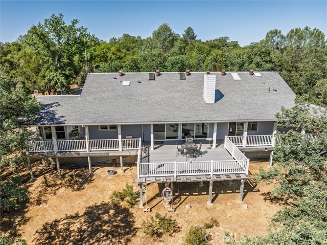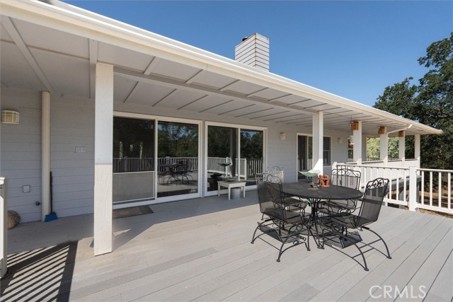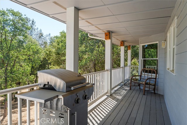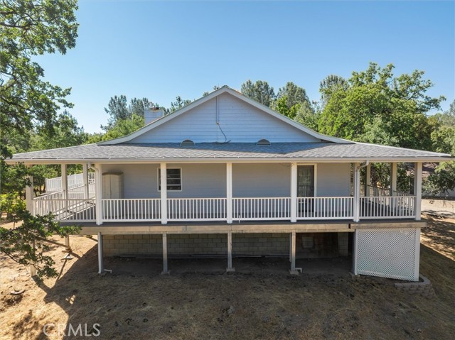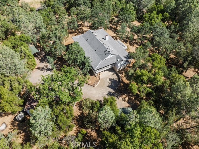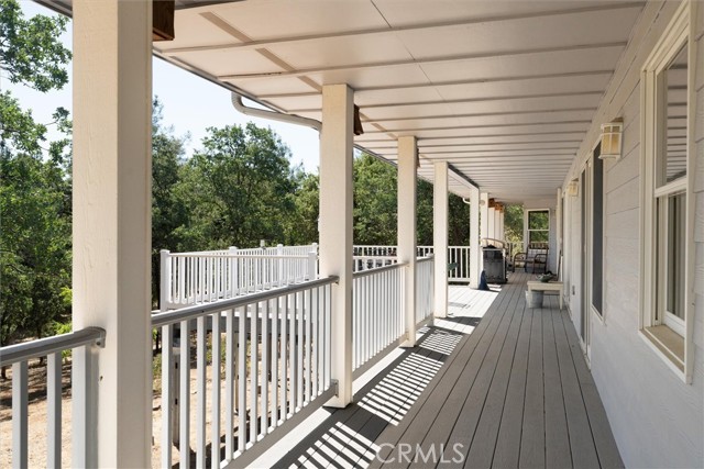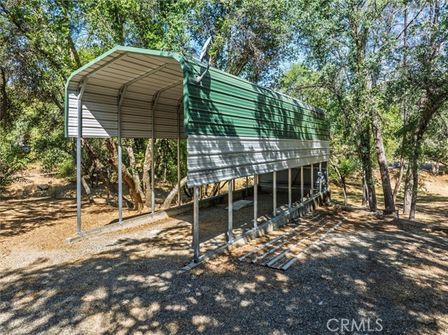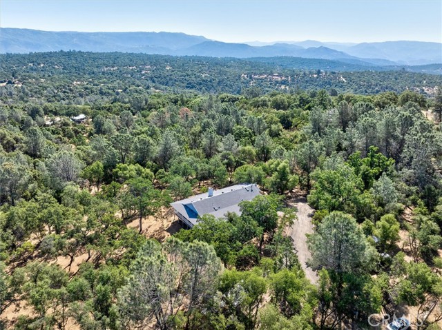 Stunning 4 bedroom, 2 1/2 bathroom home situated in a private setting on 4.46 acres of useable land. This home is move in ready and looking for it’s new owner. Enter to find the gorgeous open concept living area with laminate floors throughout. The skylights in the living room make this space feel bright and warm. The showpiece here though has to be the jaw dropping rock fireplace designed and built by Hansel Kern. The kitchen comes equipped with a breakfast bar, granite countertops, a gas range, a double sink and a large walk in pantry for plenty of food storage. With over 2,400 square feet of living space and large wrap around covered porch, there is ample room here for entertaining guests! The master bedroom has vaulted ceilings, a sliding glass door leading to the porch and an ensuite bathroom with a walk-in shower, his and hers sinks and a jetted tub. The home is a steel frame constructed home with Trex decking and vinyl deck handrails, adding fire resistance. Need space to store vehicles, yard equipment or your toys? Here you will find 2 carports (one of the carports is specifically for a Class A RV and at least 12FT tall), an attached garage, a 24×12 barn with a roll up door and a 24×27 shop with a half bathroom. Enjoy being 40 minutes to Fresno, 10 minutes to Bass Lake boat launch and 30 mins to the entrance into Yosemite! The home has it’s own well also and is not tied to the community water system. NO HOA