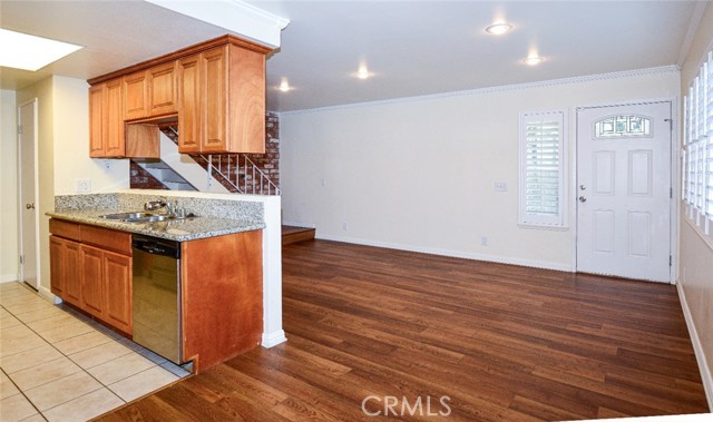Welcome Home to this wonderful private community! This unit is ready for a new family to come in and make it theirs….. This Home is very special since it is the end unit right next to the guest parking. The property has newer paint and Updated kitchen cabinets with Granite Countertop and tile flooring. All appliances are included in the sale. Updated Laminate flooring with crown molding and baseboard moldings throughout the entire home. Newer Plantation wood shutters and recessed lighting. Master bedroom has a spacious walk in closet. Updated restroom with vanity and tile shower. HVAC System was recently replaced as well. Community has beautiful parks, 2 swimming pools and also tennis courts. This Home is very close to all shopping, downtown La Verne, down the street from the Claremont Colleges and very close to the NEW Metro A Line (Gold Line) station. Garage is shared with neighboring unit but does have additional parking for a total of 2 reserved spots. Each set of units also has a shared laundry room for convenience.
