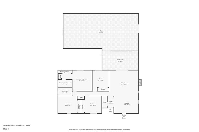 Welcome to 18165 Lilac Road in Adelanto, CA—a beautifully remodeled single-story home offering 4 spacious bedrooms and 2 full bathrooms across 1,456 sq ft of living space. Situated on a generous 9,360 sq ft lot, this property features an expansive backyard with a private swimming pool, perfect for outdoor entertaining. The home boasts central heating, a cozy fireplace in the living room, and a modern kitchen equipped with a 6-burner stove, dishwasher, and disposal. Additional amenities include an attached 2-car garage with laundry hookups. Conveniently located near Highway 395, this home is close to schools and local amenities. 3D TOUR AVAILABLE!