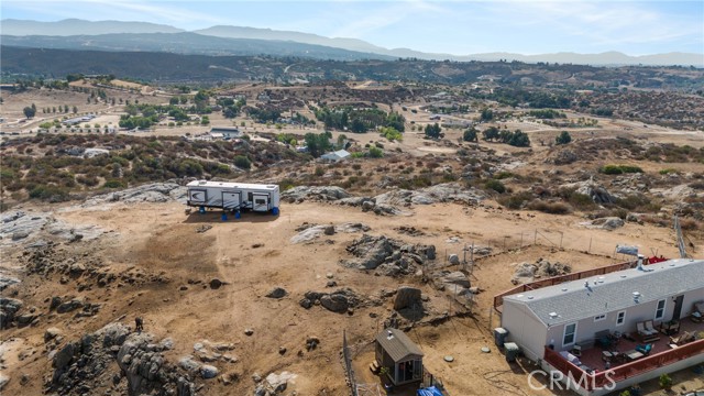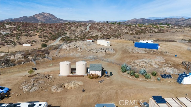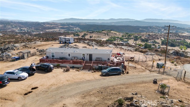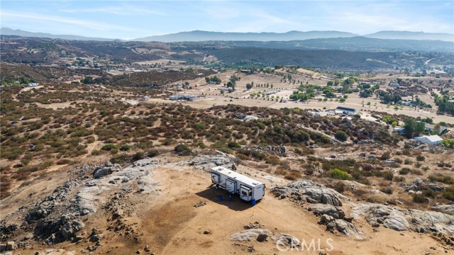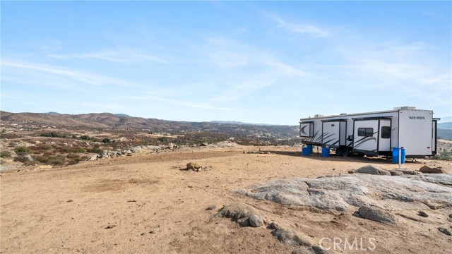 Welcome to this Spectacular 20+ Acre with 360-Degree Views – Ready for Your Dream Home! Perched at an elevation of 2,400 feet, this expansive 20+ acre estate offers breathtaking 360-degree views of rolling valleys and dramatic unspoiled mountains—just minutes from Temecula’s world-renowned wineries.This property provides an unparalleled opportunity to create your dream lifestyle while still being close to modern conveniences.OWNER MAY BE WILLING TO CARRY ON THE RIGHT TERMS!! – A graded half-acre pad is already in place, ready for your custom estate home. The property is well-equipped with essential infrastructure, including: – Private well with pump and 20,000-gallon water storage – 1,500-gallon septic system – 500-gallon owned propane tank – 600-amp electrical service – Three gated entrances off Intrepid Rd.One with an automatic gate – Multiple solar-powered outbuildings with a fire-suppression sprinkler system through out property – Approximately 8 acres of graded, usable land with room for expansion In addition to the primary home site, this property includes a charming 840 sq. ft. manufactured home 433 certified —perfect as a guest house, multi-generational living space, or temporary residence while building your main home. Features include: – Wraparound 12 foot wide deck to take in stunning views and enjoy the afternoon breeze – 7-person spa for ultimate relaxation – Inviting living room with a real fireplace – Primary bedroom with a private ¾ bath – Second bedroom (currently an office) with a shared full bath – Whole-house sprinkler and interconnected smoke detector system Additionally, the property features a 20′ x 30′ garage with 12′ walls, a 10′ roll-up door, and a standalone solar-powered system that runs lights, a vent fan, and even a refrigerator.Minutes away from top Temecula Wineries and Famous Campsites.With ample space for a family compound, multi-generational living, Air BnB, horses, agriculture, or simply enjoying the peace and beauty of nature, this rare opportunity offers endless potential. Don’t miss your chance to own a private mountain retreat just minutes from Temecula’s best!