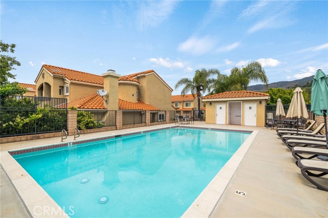 Beautifully updated and maintained three bedrooms, 2.5 bathrooms townhouse located in Wild Rose Condominium Community. Small complex with ample visitor parking, gated community pool, and close to schools. Formal living room with fireplace, hardwood floors, and French doors to outside patio, updated kitchen with granite counters, and stainless appliances including gas range, dishwasher, and dining room area with door to outside patio. Downstairs powder room with quartz counters. Upstairs features a primary suite with balcony and two closets and a primary bathroom with soaking bathtub/shower and vanity with quartz counter. Two additional upstairs bedrooms, and a hallway bathroom with large shower. Two car attached garage with direct access into house and laundry hookups with washer and dryer. (No warranty by Landlord). Located in San Dimas with Glendora Schools (tenant to verify with City).