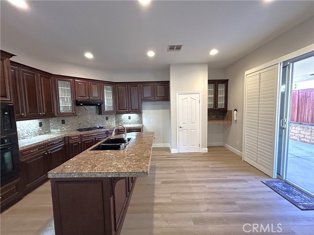 Absolutely stunning single-story home for rent in Corona, featuring 3 bedrooms, 3 bathrooms, and 2,359 sq. ft. of living space with central air and heat. This immaculate property offers beautifully manicured landscaping, a gated front porch, wood floors, custom window shutters, abundant kitchen cabinet space with a pantry, a tiled fireplace with built-in entertainment cabinets, recessed lighting, fresh interior paint, and ceiling fans in every bedroom. The home is hardwired with ethernet and coaxial cable and boasts an expansive master suite with a walk-in closet enhanced by a custom cherry wood organizer and a luxurious bathroom with a marble tile shower floor. Additional highlights include a three-car tandem garage with overhead storage and a showroom-style floor finish, while the backyard is perfect for entertaining with a wraparound cement patio and a covered dining area. Ideally located off Lincoln Avenue and Foothill Parkway in the heart of Corona, this home blends comfort, convenience, and elegance.rnrnSCHOOL DISTRICT: Corona Norco Unified School DistrictrnUTILITIES: Tenants pay allrnLANDSCAPING: Tenant billed $75 monthlyrnPET POLICY: Small pets may be allowed. Submit photo(s) w/applications