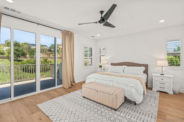 Expansive private driveway & exceptional privacy — Like its name, 3012 Starry Night shines with style & comfort. With no adjacent neighbors, this home offers a peaceful sense of space while still being part of the lively Harmony Grove community. The oversized private driveway adds both convenience & a grand first impression the moment you arrive. A serene, exclusive setting that still feels connected to the warm community. The home welcomes you with a freshly painted exterior & continues to impress inside with 4 spacious bedrooms, a versatile loft, & a polished office that can easily double as a 5th bedroom. At the heart of the home, the open-concept great room flows effortlessly into the chef’s kitchen, appointed with Bosch stainless steel appliances, an oversized island, abundant cabinetry, & a walk-in pantry. From the dining area, California sliding doors extend the living space outdoors, creating a seamless connection to the backyard for true indoor-outdoor living. A first-floor en-suite bedroom provides flexibility for guests or multi-generational living. Upstairs, the primary suite serves as a private retreat, featuring dual walk-in closets, a spa-inspired bath, & private balcony. The loft completes the upper level, offering endless versatility. Additional highlights include paid solar, TWO tesla powerwalls, smart thermostat, LVP flooring, & designer touches such as an accent wall. Harmony Grove offers resort-style amenities, pools, spa, clubhouse, playgrounds, & miles of scenic trails. 3012 Starry Night is where privacy, retreat, & community truly come together.