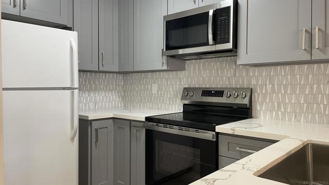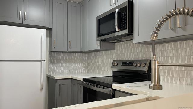 THIS IS A STUDIO. This charming and fully remodeled ground-level studio offers 463 sq. ft. of well-designed open living space in the heart of Linda Vista. The spacious main living area features brand-new luxury vinyl plank flooring and fresh paint throughout, creating a modern and inviting atmosphere. The kitchen boasts stylish upgrades including new shaker cabinets, a contemporary backsplash, sleek countertops, stainless steel sink, and matching stainless-steel stove and microwave. The spacious full bathroom is completely updated and includes a convenient closet for added storage. Enjoy a lush community setting with ample grassy areas throughout the complex. Located in a vibrant college neighborhood, this centrally located home offers easy access to nearby restaurants, beaches, freeways, and shopping destinations — perfect for both commuters and lifestyle seekers alike.