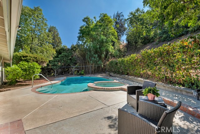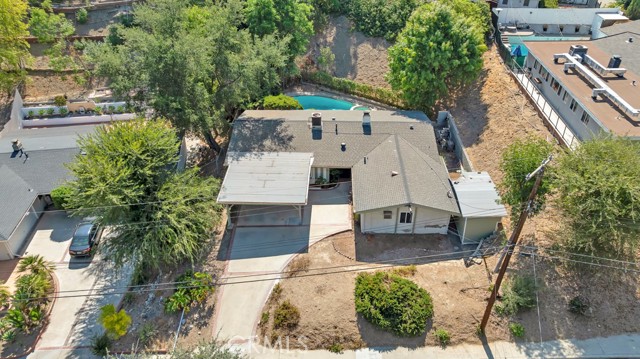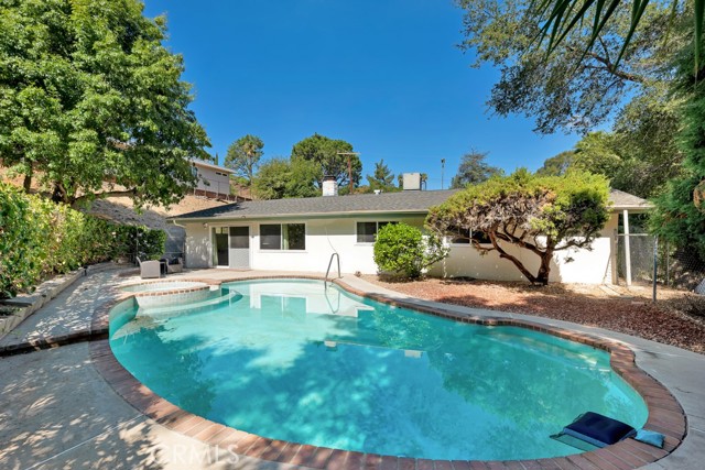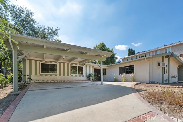 Welcome to this spacious Carlton Terrace pool home! This 4-bedroom, 2-bath, 2,125 sq. ft. single-story ranch offers endless opportunities to make it your own. Step through the bright double-door entry into a foyer that opens to generous living spaces, including a large eat-in breakfast nook, U-shaped kitchen with quartz countertops and bar, formal dining room, a living room with floor to ceiling brick fireplace, and an additional family room created from the permitted garage conversion. Vaulted ceilings in the living and dining areas enhance the open, airy feel while providing views of the sparkling pool and spa.rnrnThe bedroom wing features four rooms with vaulted ceilings, including a primary suite with dual closets and a walk-in shower. Additional highlights include a tasteful storage shed in the side yard, an enclosed bonus storage area off the family room, and a convenient laundry closet located in the family room. A attractive carport provides shade and protection for your vehicles.rnrnIdeally situated, this home is close to shopping, dining, and offers easy access to the 101 freeway.
