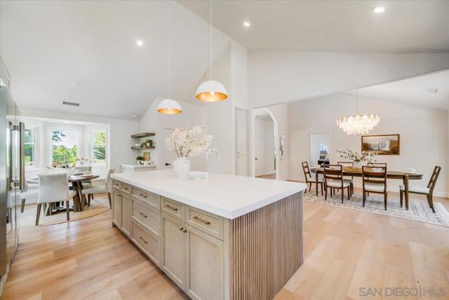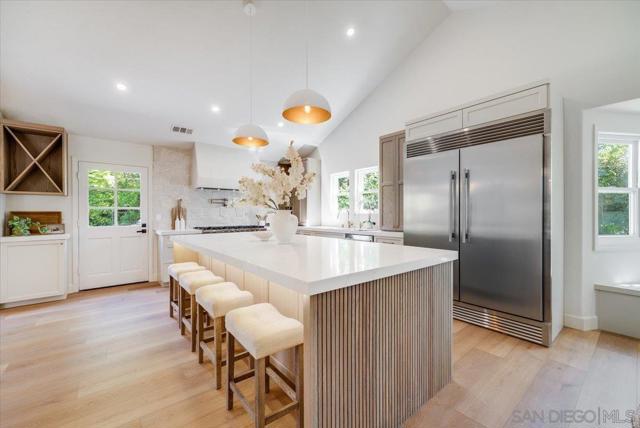 Behind a private gate and long driveway, 2114 Vista Valle Drive reveals an exquisite English Tudor Manor reimagined for modern living, blending timeless character with every inch redone to perfection. Owned solar powers the property, including an oversized three-car garage with a fully independent ADU above, complete with its own private entrance, kitchen, living room with fireplace, bedroom, full bath, laundry, and balcony with sweeping views,ideal for multigenerational living, guests, or income opportunities. The main residence showcases soaring ceilings, statement lighting, and incredible tile work throughout. A chef’s kitchen anchors the home with custom cabinetry, a ribbon-tiled island, bay windows, and premium Forno appliances including an oversized refrigerator/freezer and an eight-burner range. The spa-like primary suite is a true retreat, offering dual balconies, a sitting room with fireplace, dual floating vanities, a dual-entry walk-in closet, slipper tub, and a massive shower with dual waterfall heads. With three fireplaces, three laundry rooms, and abundant storage across multiple levels, this estate balances elegance with livability. The lower level features two offices/flex spaces, a generous laundry room, and three additional bedrooms including a junior suite with its own private bath and outdoor access. Outdoors, enjoy 1.24 acres of landscaped grounds with a lush lawn, built-in fire pit, gardening beds, walking paths, and quintessential Fallbrook scenery. This is a rare opportunity to own a private English Tudor Manor that marries timeless