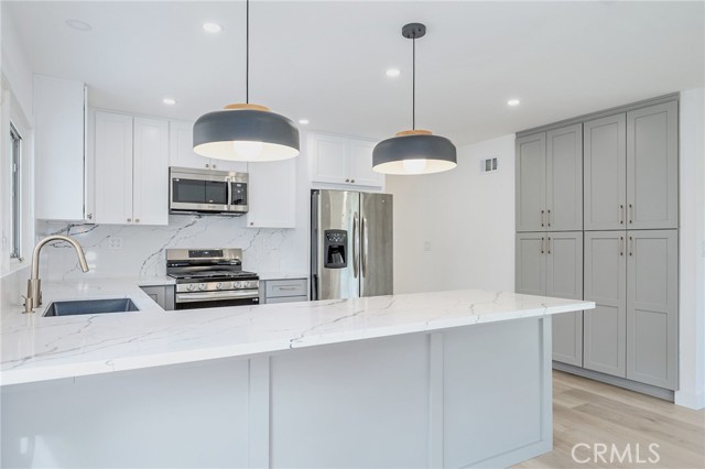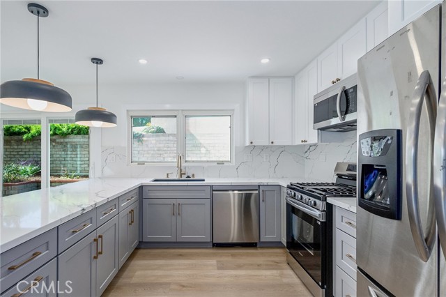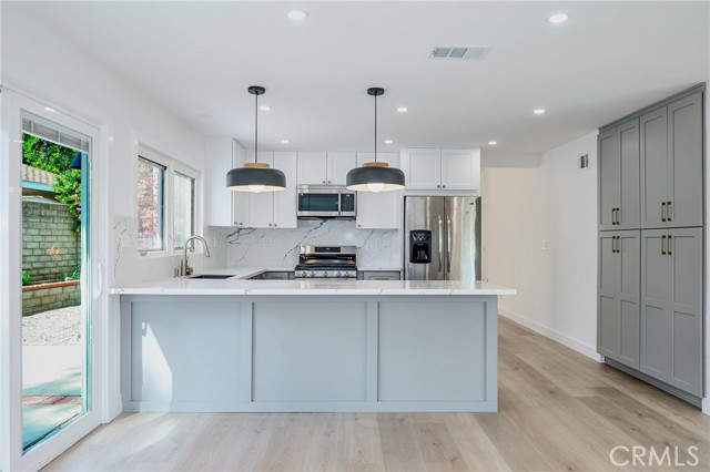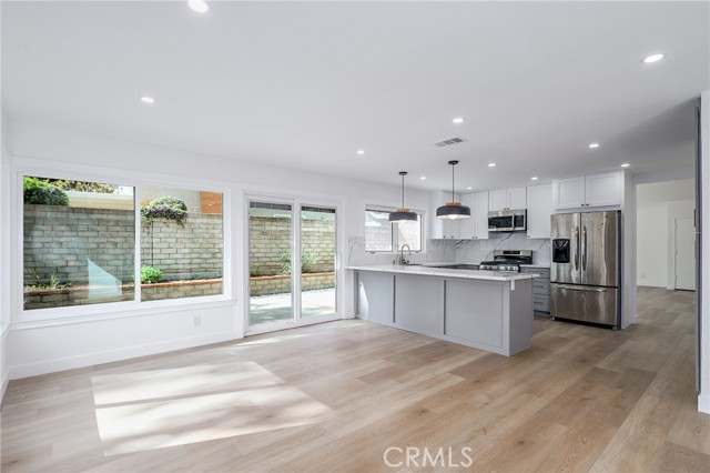 Welcome to this beautifully updated 3-bedroom, 2-bathroom home located in the heart of Newbury Park. Featuring a bright, open-concept floor plan with vaulted ceilings, this home is filled with natural light and modern charm. Enjoy brand-new flooring, fresh interior paint, energy-efficient dual-pane windows, and a completely renovated kitchen outfitted with sleek stainless steel appliances. The brand-new furnace and ductwork ensure year-round comfort and peace of mind. The master bedroom boasts a generous walk-in closet and a luxuriously remodeled bathroom. Every detail has been thoughtfully designed to blend comfort with style. Step outside to a lovely private patio and expansive grassy area, perfect for entertaining or relaxing. The backyard offers direct access to scenic greenbelt trails that lead to the community’s amenities—including multiple swimming pools, tennis courts, and a clubhouse/rec room. Take morning walks or evening jogs along beautifully landscaped paths, or enjoy the convenience of being just a short stroll from local parks, shops, and restaurants. This turnkey home is move-in ready—perfect for enjoying indoor-outdoor living and hosting friends and family. Don’t miss this rare opportunity!
