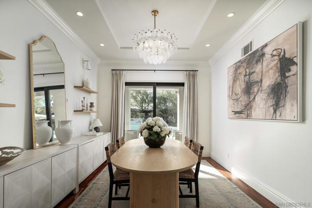 It’s no surprise that the seller of this home is a world class designer. Every inch inside and out has been masterfully curated to the highest degree of elegance and perfection, with fixtures and finishes that look like they belong in Architectural Digest everywhere you look. The home features first floor master suite, top-of-the-line appliances, home gym, owned solar, spacious outdoor loggia, pristine hardscape, huge lawn area, oversized lot with ocean views, walk-in closets in every bedroom, an expansive guest suite, and access to the highly sought after Roger Rowe School in Rancho Santa Fe. Take advantage of all that Cielo has to offer with an Olympic pool, clubhouse, parks, tennis, pickleball, gym, and community activities. This home is an absolute gem and not to be missed!