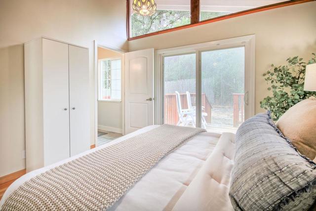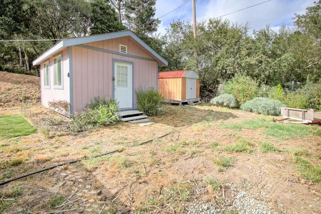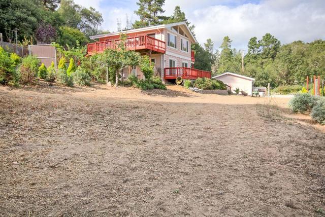 Discover your countryside retreat at 687 Calabasas Rd, a peaceful 10-acre sanctuary in the Aptos Hills. This upgraded 3-bedroom, 2-bathroom home seamlessly blends rustic charm with modern comfort. A reverse floor plan maximizes natural light and panoramic views, while the remodeled kitchen features maple cabinets, quartzite countertops, and a new range. Updated bathrooms and laundry, radiant tile floors, solid wood floors, insulated walls, and fresh interior paint create a warm inviting feel. Upgrades since 2013 include a 550-ft well with pump and tank, a 50-year roof with skylights, energy-efficient windows/doors, and new heaters. A wood stove adds cozy ambiance. The detached 2-car garage w/220V, insulated art studio w/skylights and storage sheds add flexibility. Outdoors, enjoy deer-fenced gardens & orchard (featuring citrus, plums, apples, pears, figs, olives & more), redwood deck, a stamped-concrete entry, a retaining wall with a French drain & creek stabilization, showcasing years of care. Just minutes from town, this rare property offers privacy, acreage & turnkey upgrades, a true country gem.