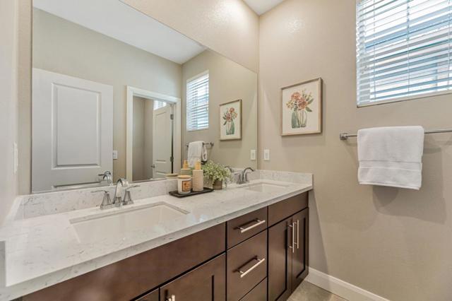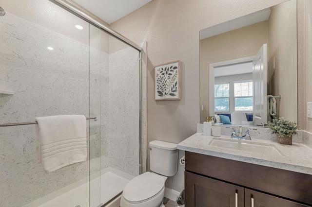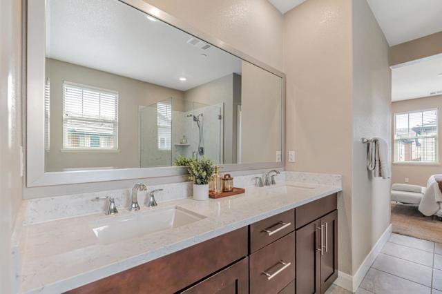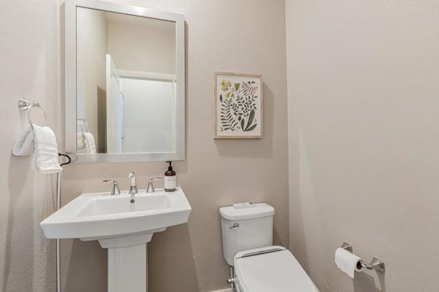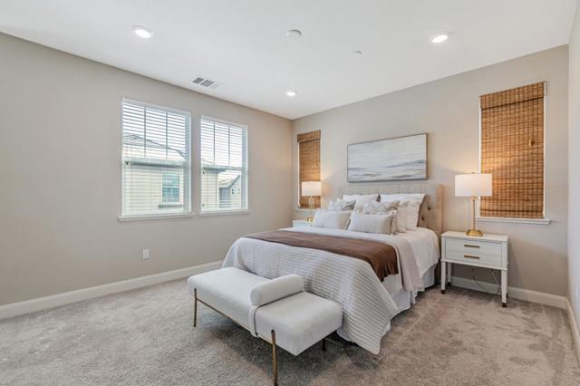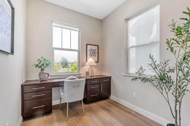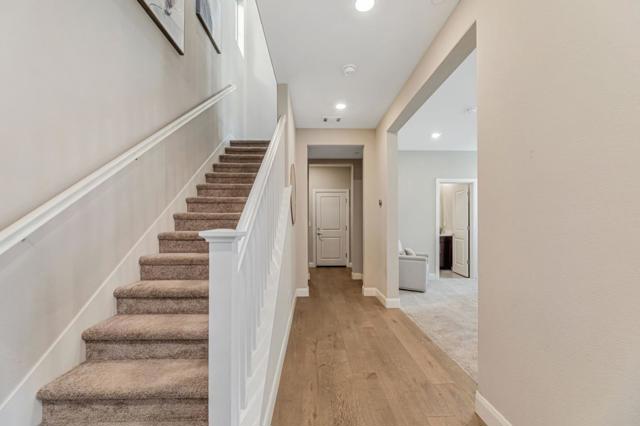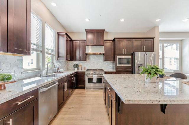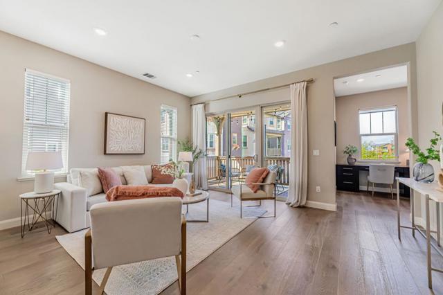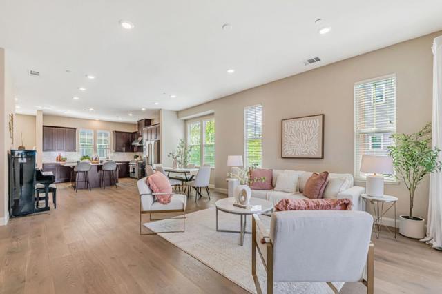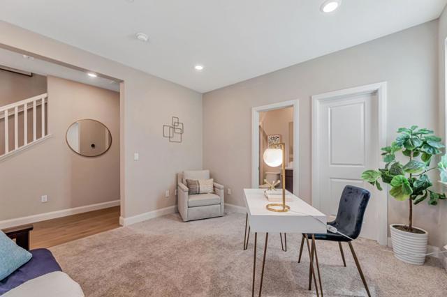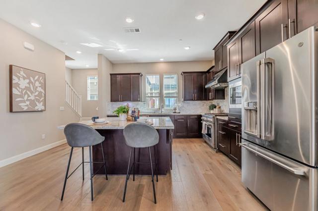 **Solar panels fully paid off! Spectacular Corner unit!** 4 bedroom (3 bed + office), 3.5-bathroom home in the desirable Waterstone community of Milpitas. Built in 2016, this beautiful tri-level home features an open-concept living and dining area, a chef’s kitchen with granite countertops, 6 burners gas range with large island. Monogram appliances throughout, LED recessed lighting with 10 feet high ceiling. Luxurious Primary suite with deep oval soaking tub. NEST thermostat on each floor. On the ground floor there is a home office & full bathroom, it could be for guests room. The 2nd floor includes an office nook with a built-in desk, and a private balcony perfect for outdoor dining and relaxation. Community BBQ and Playground. Top rated schools. Shops and Parks within 5 mins drive. Easy access to highway 237,I-880 and I-680