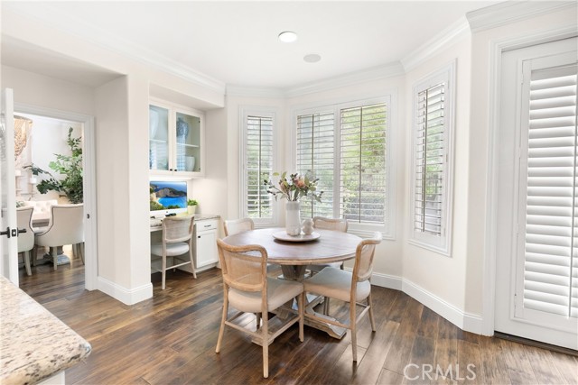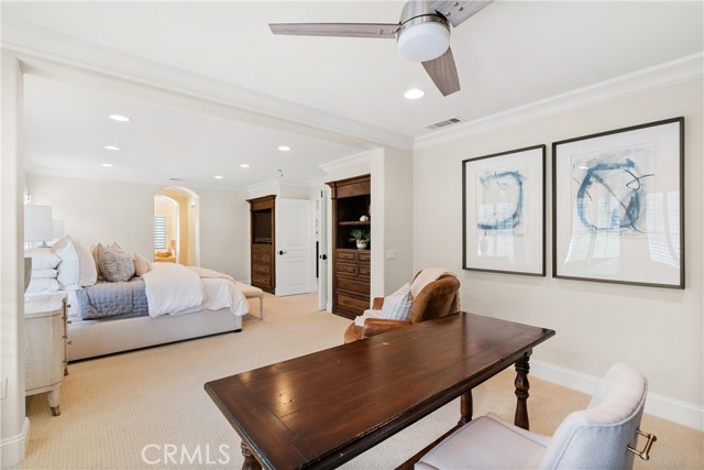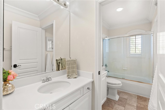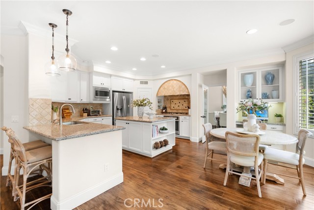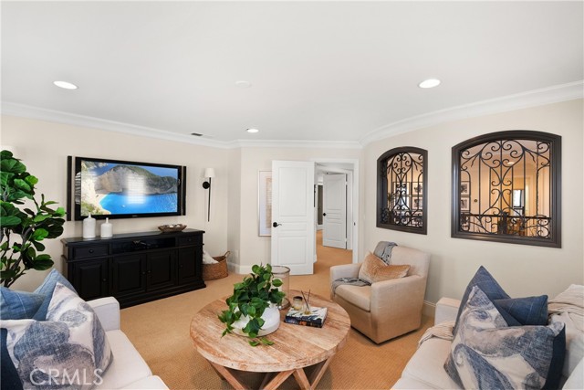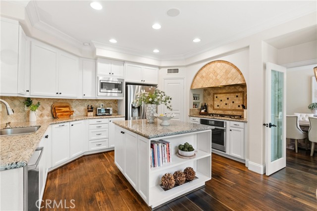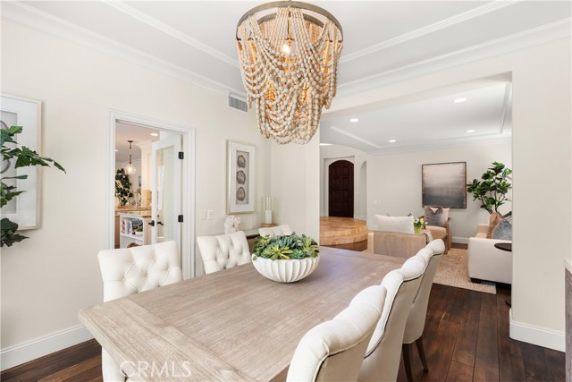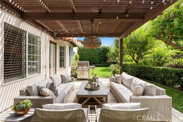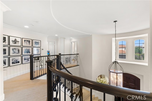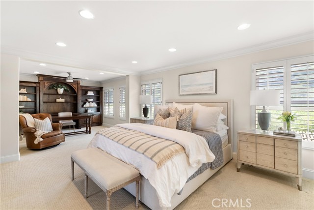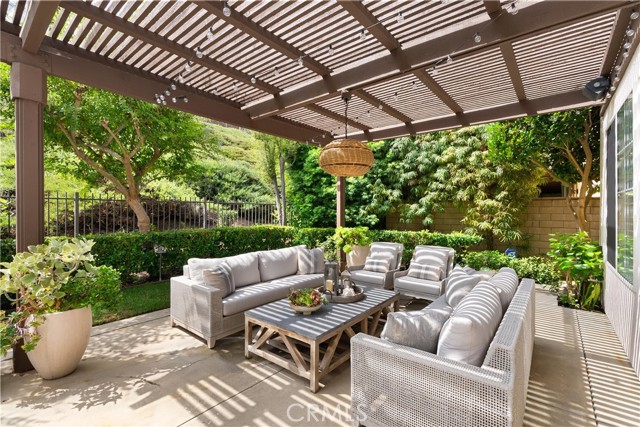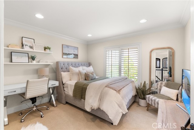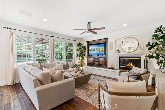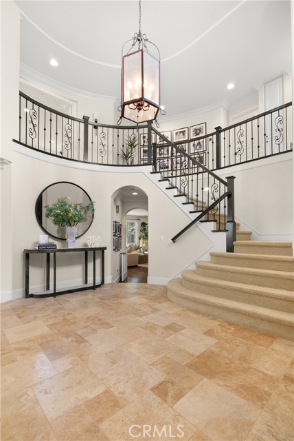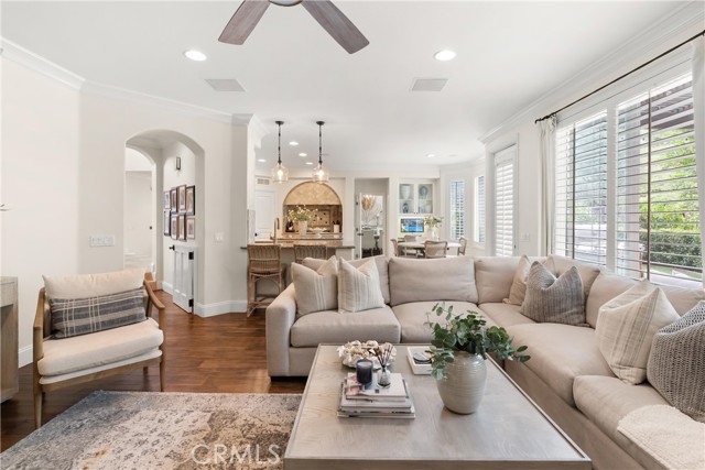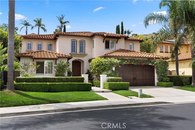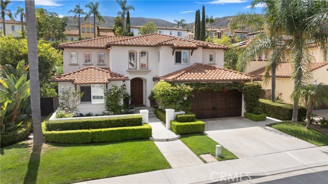 Nestled within a prestigious gated community, this elegant residence blends timeless upgrades with everyday comfort, offering a rare combination of sophistication and convenience. A charming courtyard entry with a fountain leads to a dramatic vaulted foyer with soaring ceilings, hardwood floors, and designer lighting accents that set the tone for the home’s refined aesthetic.Formal living and dining rooms are enriched with crown molding, plantation shutters, and custom built-ins, while the gourmet kitchen boasts granite counters, a center island, and brand-new stainless appliances. The open-concept design flows seamlessly into the family room, highlighted by recessed lighting, a built-in sound system, and views of the tranquil backyard. On the main level, a highly desirable bedroom and a versatile bonus room offer exceptional convenience and flexibility. A remodeled laundry room with custom cabinetry completes the first floor.Upstairs, a spacious loft and private primary retreat create a true sanctuary. Designer details continue throughout with multiple ceiling fans, a wrought-iron stair railing, and thoughtful built-ins. Notable upgrades include a new air conditioning system, whole-home water purification, epoxy-finished garage flooring, an upgraded garage door, custom gates, and a newly designed front entry door.The backyard is enhanced by beautifully landscaped grounds, featuring a covered patio and inviting spaces for both entertaining and relaxation. With no Mello-Roos and a prime location near beaches, dining, and equestrian trails, this residence offers an exceptional lifestyle opportunity in the heart of South Orange County.