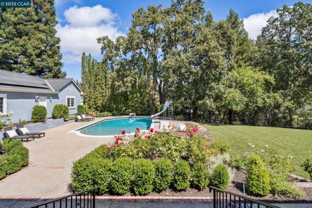 Custom home (located in the exclusive Upper Hemme Enclave of Westside Alamo). Sophisticated – vibes Piedmont or East Coast estate. Primary suite includes a flexible retreat space—ideal for a gym, office, or reading nook—alongside a newly updated spa-like bathroom with radiant heat floors, soaking tub, dual walk-in closets, and a luxurious shower. Separate au pair/in-law suite conveniently on the main level. 2 private offices, versatile upstairs bonus room AND 5/7 car finished garage (approx. 1700 SF with epoxy floors, custom cabinetry, and 800 SF of attic storage. Oversized bay framed for potential cabana conversion or ADU conversion. Over 1/2 acre private backyard with low maintenance turf lawn and putting green. Resurfaced pool (2019) complete with retro slide, diving board & inset spa. Solar.