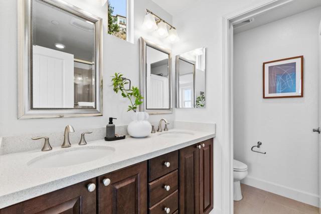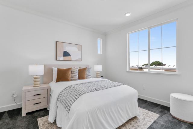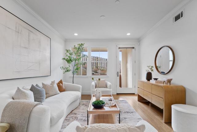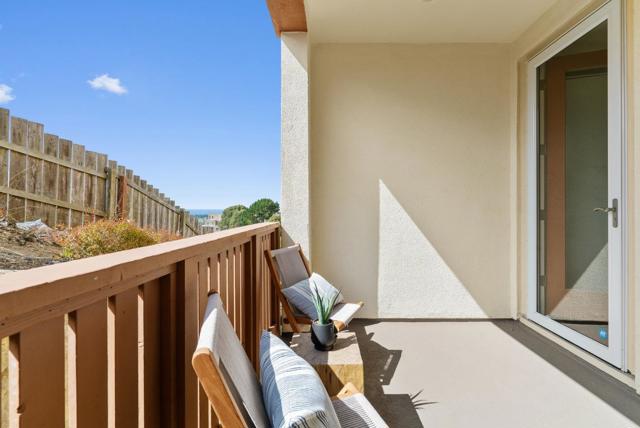 Gorgeous former model home, a 2017-built, meticulously maintained townhouse-style condo with prime convenience. Just minutes from San Francisco, BART, and SFO, this light-filled home offers stunning views, soaring ceilings, and an open-concept floor plan. Oversized windows bathe the space in natural light, complemented by hardwood floors in main areas, plush carpet in bedrooms, recessed lighting, and central heat/AC. The chefs kitchen features quartz countertops, abundant cabinetry, stainless steel appliances, and a large breakfast island. Two generous bedrooms, including a serene primary suite with city views, a walk-in closet, and a spa-like bath with dual vanities. A full bathroom down the hall serves guests and the second bedroom. Enjoy your private balcony, in-unit laundry, and an EV-ready 2-car garage. The location is unparalleled – just minutes to Westlake Plaza, H Mart, Stonestown Galleria, Serramonte Center, parks, and schools. Easy access to Hwy 280, Daly City BART, Downtown SF, and major employers like Genentech, YouTube, and Walmart.