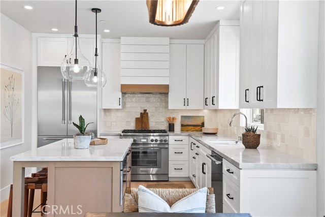 Welcome to your dream coastal retreat at 825 W Bay Avenue Unit A. This stunning new construction condo offers a perfect blend of luxury and comfort, spanning 1,732 square feet of meticulously designed living space. With 3 spacious bedrooms and 4 elegant bathrooms, this home provides an ideal setting for relaxation and entertainment with views of the Newport Harbor from every floor.rnrnStep inside to discover the seamless flow of hardwood floors underfoot, enhanced by the warm glow of chandeliers and recessed lighting. The open kitchen is a chef’s delight, featuring a modern island, Thermador appliances, and a custom range hood. Enjoy meals in the dining room or at the island, creating a versatile space for casual dining or entertaining.rnrnThe living area is anchored by a Taj Mahal Quartzite fireplace, providing a cozy ambiance for gatherings. Retreat to the primary ensuite, complete with a double sink bathroom and a walk-in closet. Outdoor living is redefined with a stunning private roof deck with panoramic bay views. A convenient third story powder room also makes it easy to host those summer barbecues with a view.rnrnEmbrace the Newport Beach lifestyle in this exquisite condo, where every detail caters to your comfort and style. Located next to a premiere bay beach perfect for soaking in the OC sun, 825 W Bay Unit A is ready to welcome you home.