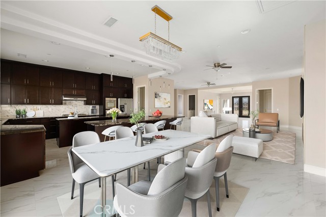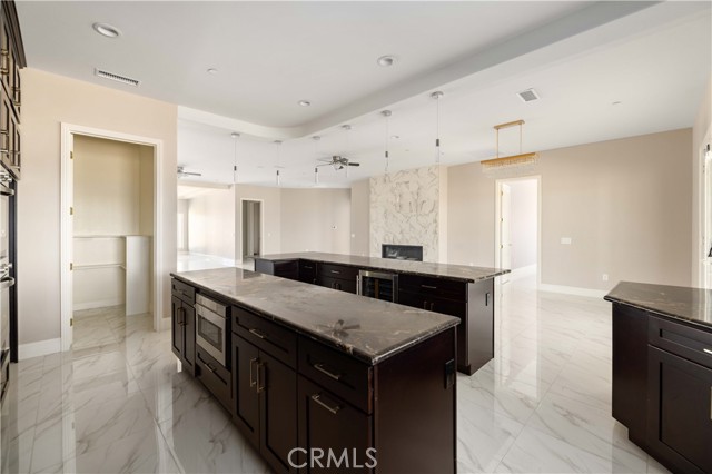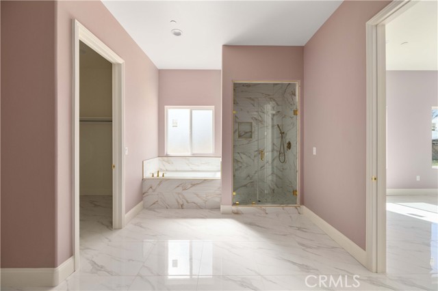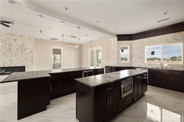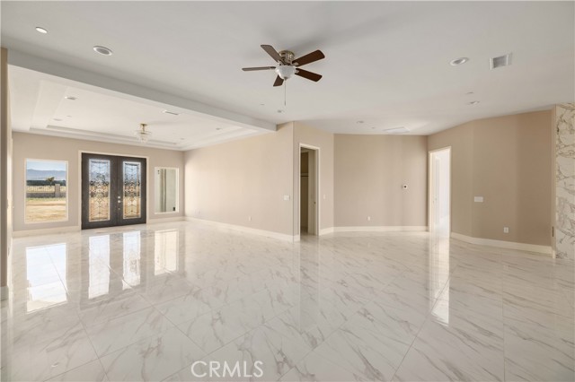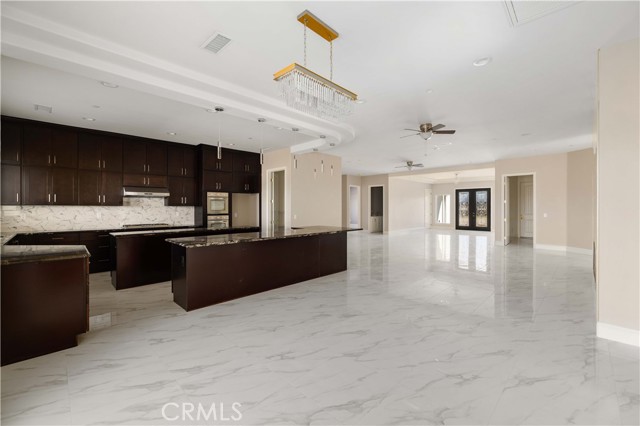 This custom home is in a rural area with room to raise horses and other animals. It is freeway close to commute. Enter through the custom glass doors to an open concept entry, living room, and dining room. The kitchen features two islands, dual ovens, five burner stove, wine cooler, and walk in pantry. Casual dining can be set up at one of the islands. The dining area is nearby with access to the covered patio. The fireplace is placed so that the large screen flat screen television can be placed on the wall above it. There are two primary bedrooms with on-suite bathrooms; another two bedrooms share a Hollywood style bathroom; and, one bedroom can be used as a guest room, den, studio, and much more. There is a bathroom nearby. The floors are exceptional with a custom medallion in the entry. Got vehicles? There are two – two car garages; one on each side of the house. One has additional space for a work bench and tools. The lot features extra room to build a pool area. And beyond that can be the area for animals. The solar system is paid. Front landscaping is in process.