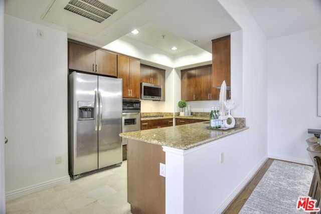 Welcome to this stunning turn-key condominium, built in 2007, perfectly situated near some of the most vibrant neighborhoods in Los Angeles. Experience the convenience of being just moments away from Larchmont Village, Melrose, Fairfax, Brea, Koreatown, and Hollywood, with easy access to the 101 Hollywood Freeway. Step inside the open-concept unit and be greeted by a modern kitchen equipped with top-of-the-line stainless steel appliances, recessed lighting, luxurious granite countertops, and an abundance of cabinetry. The breakfast counter provides a delightful spot for enjoying a quick bite or your morning coffee.Designed with entertaining in mind, the spacious dining area is thoughtfully positioned across from the kitchen, creating a seamless flow. The living room, with its bright and airy high ceilings, opens up to a comfortable balcony where you can relish in the refreshing summer breeze. The en-suite master bedroom is a true retreat, featuring a generously sized master bathroom complete with double sinks, a separate shower, and a spacious bathtub the epitome of relaxation. The second bedroom is equally spacious, making it an ideal guest suite or versatile space. Both bedrooms are strategically placed apart from each other, ensuring utmost privacy. Included with this unit are two conveniently located assigned parking spaces, Side by Side, providing ease and convenience. Modern comforts abound, including central air/heat, a security entrance for your peace of mind, and the convenience of an in-unit washer and dryer. As a resident, you’ll have access to the community gym, enhancing your active lifestyle. Positioned at the front of the building, this unit enjoys abundant natural light.