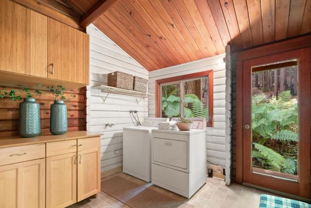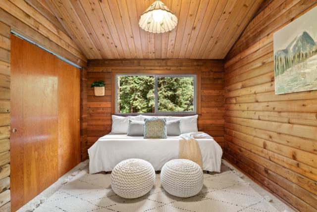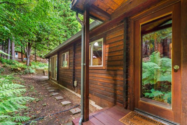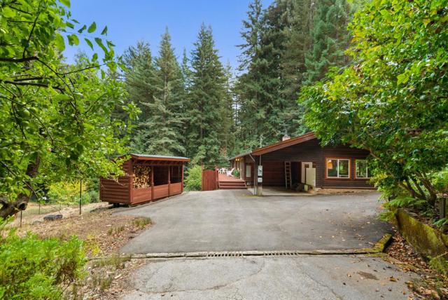 Escape the hustle and bustle of the busy Bay Area in this country retreat. Located only minutes from Highway 9 and Ben Lomond shopping, this 1,458 square foot, three bedroom, one bathroom log home exudes charm. Built-in knotty pine bookshelves create a library-like setting in the family room. A fireplace in the living room as well as forced air will keep you cozy on winter nights. Multiple skylights throughout the home create an abundance of natural light, and there are views of greenery from every window. There is a huge pantry in the separate laundry room so that you can stock up. A wide front porch overlooks a fully fenced and sun-drenched expansive flatter lawn area, perfect for creating a vegetable garden. Several venerable apple trees provide both ambiance and edible fruit. Carport and several sheds for extra storage. Situated on 30+ private acres, with a spring for water and a passing septic system, this home would be a wonderful year-round dwelling and provide a private escape during the hot summer months. This retreat is the place to create wonderful memories!