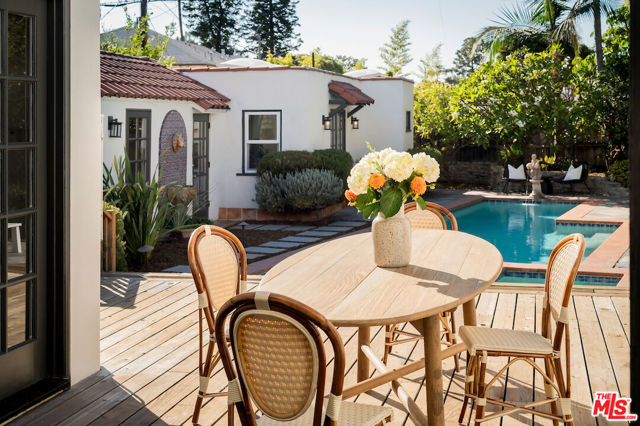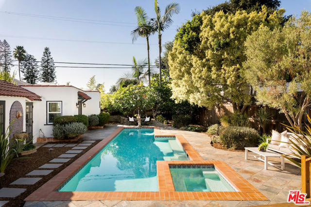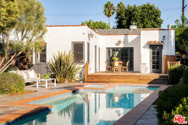 Location, Location, Location! Nestled in the heart of desirable Wilshire Vista, this absolutely charming English cottage style residence offers the perfect blend of character, comfort, and lifestyle. The living room welcomes you with gorgeous hardwood floors, coved ceilings, and a rare Bachelder fireplace, a stunning focal point that showcases timeless craftsmanship of the home. The 2 bed, 2 bath main house is complemented by a 1 bed, 1 bath pool cabana ideal private retreat for guests, a home office, or creative space. French doors off the living room open to your own oasis: a large lap pool with spa and fountains surrounded by lush landscaping. A spacious deck overlooking the pool sets the stage for outdoor dining, entertaining, or simply relaxing in the California sun. Situated on an expansive 7,448 sq. ft. lot, there’s plenty of room to enjoy both indoor and outdoor living. All this, while being just one mile from LACMA, world-class dining, Equinox, LA Fitness, and only minutes to The Grove, Trader Joe’s, Whole Foods, and Erewhon. This home is the perfect mix of historic charm and modern convenience in one of Los Angeles’s most central and sought-after neighborhoods.