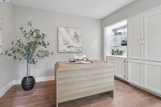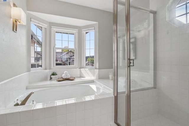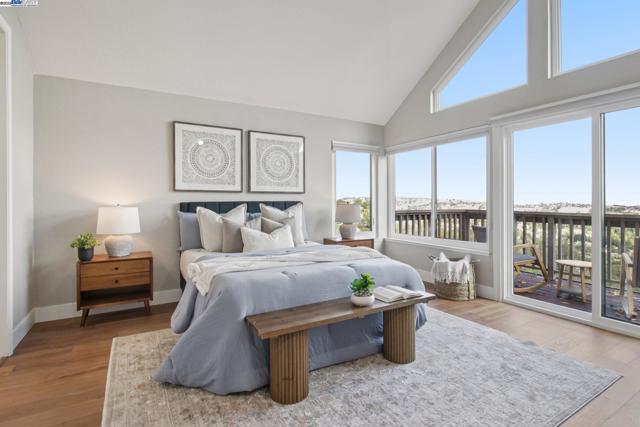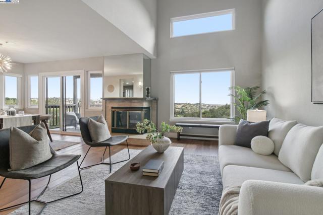 Stunning, move-in ready end-unit in Lafayette’s desirable Haslemere community with breathtaking views of the Carquinez Strait, hillsides, and valley from both decks. This extensively updated 3BD/3BA unit lives like a single-family home with only one shared wall and an attached 2-car garage. The dramatic main level features soaring ceilings, engineered hardwood floors (Heirloom Collection by Provenza), updated windows, and fresh interior paint. It includes a spacious living room with fireplace, dining area, full bath, and a versatile bedroom or home office with custom French doors. The eat-in kitchen boasts a Samsung convection double oven and designer touches throughout. Upstairs, the serene primary suite offers vaulted ceilings, a private deck with views, spa-like bath, and blackout window treatments. A second spacious ensuite bedroom and laundry area complete the upper level. Additional highlights include USB outlets, plantation shutters, new garage doors, turf lawn, bonus storage, and updated HVAC. Both newly refinished decks provide the perfect setting to unwind while enjoying panoramic views. Community pool, spa, and BBQ area. Minutes to BART, freeways, top-rated Lafayette schools, and shopping. Views: Ridge
