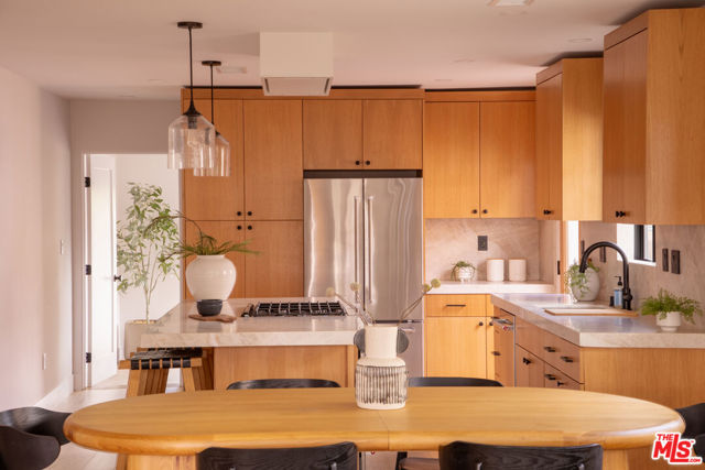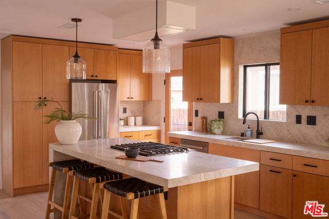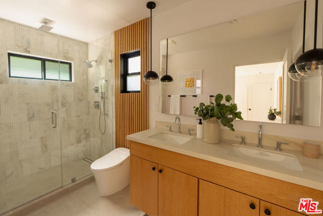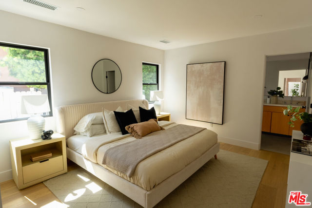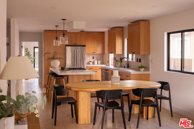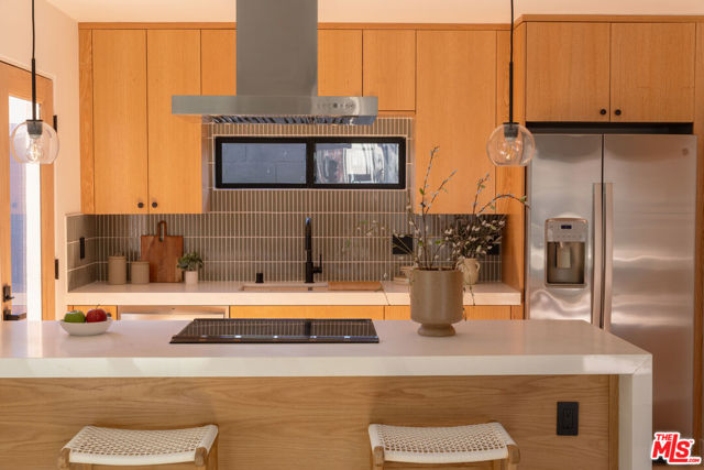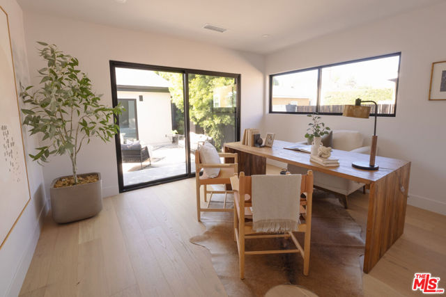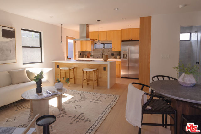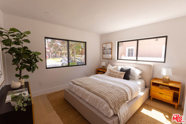 Two homes share one thoughtfully designed lot, each with its own sense of comfort and style, a warm main residence and a bright 2-bedroom ADU that’s as versatile as it is welcoming. A mahogany entry and sand-finish stucco signals of the craft within. Inside, the experience is immediate: widened, engineer-designed openings link living, dining, kitchen, and hall so light travels unbroken across Shell Beachtoned engineered hardwood. Smooth-coat walls and enlarged Milgard window openings set a calm tone; layered lighting, recessed throughout with statement pendants shifts the mood from morning to evening. The kitchen leads with restraint. Custom white-oak cabinetry and honed Bedrosians Taj Mahal quartzite, paired with a crisp KitchenAid suite anchoring daily life and dinner with friends. A considered circulation leads to the reworked primary suite: a refined entry sequence, larger bedroom proportions, bespoke walk-in closet, and a spa-style bath designed for restoration. Secondary bedrooms are reconfigured with thoughtful storage and flow; laundry is smartly relocated to a stackable LG ThinQ setup to keep the plan efficient. Craft supported by performance. A complete interior rewire with new circuits, plus all-new switches, dimmers, outlets, and fixtures. Full copper re-pipe with Navien 10-GPM tankless, new heating unit with brand-new ducting/returns and Google Nest, Title 24compliant wall/ceiling insulation, and a dedicated 220V line for EV charging. New drywall, upgraded baseboards and Shaker doors, plus a discreet pull-down attic ladder reveal 50 sq ft of decked storage. Outdoors, the architecture meets the landscape. Reinforced front planter and concrete entry steps give way to an exposed-aggregate backyard scored on the diagonal with Baja-blue pebble inlays. Low-voltage uplighting traces Japanese maples and native plantings, with roses and a jacaranda in the parkway. Tesla solar for the main residence is fully paid, trimming monthly costs without sacrificing comfort. Beyond a separate gated walkway, the second home address 2237 lives as its own residence. A ground-up build on a new slab with two bedrooms, one bath 815 sq ft, Milgard windows, and three sliders that open the living spaces to light and air. Inside: Farrow & Ball “Wevet.” Exterior finished in LaHabra sand-finish stucco. Fully electric and Title 24 compliant with a separate meter and solar-ready panel, GE electric range, Rheem electric tank water heater, and a COSTWAY three-zone mini-split serving both bedrooms and the living room. In-unit stackable laundry adds everyday ease. Enphase solar is also fully paid. Parking for up to five behind the motorized gate completes the compound. Two fully realized homes crafted to live beautifully today and to perform intelligently for years to come. Nearby essentials and favorites include Whole Foods and Sprouts for groceries. Coffee at Jurassic Magic, Palm Grove Social, and Mad Lab Coffee. Around the corner, you’ll find the best of West Adams restaurants: The New Maydan Market Alta, Mizlala, Tartine, Mian, Farmhouse Kitchen Thai Cuisine, Delicious Pizza, Highly Likely, Cento and much much more! Explore nearby parks and trails such as Kenneth Hahn, Culver City Stairs, Ballona Creek Bike Trail. The location also offers easy access to Culver City, Santa Monica, and Downtown LA. You’re minutes to the Original Farmers Market, LACMA, The Grove, and the La Brea Tar Pits & Museum. A lifestyle of convenience, dining, and culture at your doorstep.