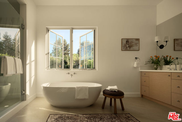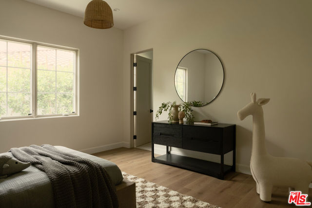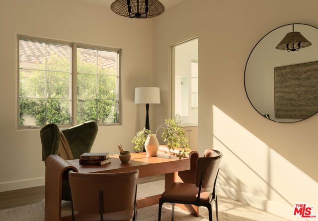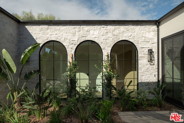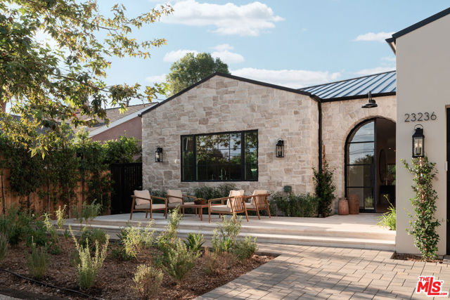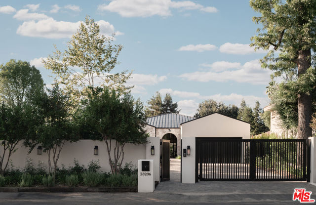 Presenting this 2025-built single-story modern farmhouse compound, gated and set back from the street with a pickleball court, numerous outdoor gathering spaces, and sparkling pool and spa in Walnut Acres Estates. The home’s cobblestone and soft stucco facade blends natural elements to form a serene, welcoming environment for all to enjoy. Guests arrive into a sizable motor court amidst carefully placed drought-tolerant landscaping and cozy sitting areas under shade trees. Through a beautiful curved glass-paned front door, visitors discover high ceilings, warm woods, and organic hues throughout, calming the senses. The living room is centered by a stone fireplace flanked by thoughtfully designed built-in book cases that continue the home’s casual, artistic vibe. The kitchen is grand and elegant, with custom cabinetry, state-of-the-art appliances including a commercial-grade range with smartly designed hood plus pot filler, and oversized center island. The adjacent butler’s pantry perfectly connects to the formal dining room for catering and entertaining. Nearby is a glass-encased wine cellar, as attractive as it is functional, and a plush theatre/screening room for movie nights at home. A series of arched windows lines the hall to the owner’s wing. Here, sliding glass opens to gardens and patios for effortless indoor-outdoor living. The primary bath is large, with a dual-sink vanity, soaking tub, and rainwater shower adjacent to the walk-in wardrobe with custom built-ins. Secondary bedrooms are also en-suite, and one is currently utilized as an office. Privacy hedges surround the backyard, with its variety of spaces to relax, recline, and converse, including a covered outdoor living room, al-fresco dining area, and barbecue with prep sink and bar ledge. Enjoy the shimmering waters of the pool and spa, roam and play on the grassy lawn, or challenge friends to a game of pickleball or basketball on the sport court. This is the place where memories are made! Welcome to an ideal location close to parks, schools, houses of worship, and the 101 Freeway, just moments to the Calabasas Commons, Westfield Topanga and Village, and upcoming Rams Village at Warner Center. Also located within the attendance boundaries of top-rated Woodlake Avenue Elementary School.