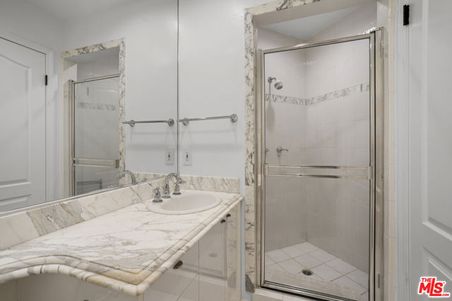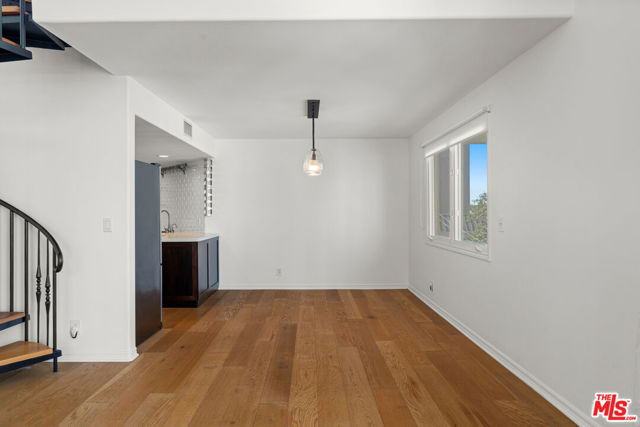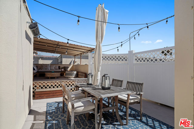 Welcome to this beautifully designed, light-filled penthouse that blends modern style with functionality. Featuring 3 bedrooms, 3.5 bathrooms, and 1,835 SF of living space, this sophisticated unit boasts soaring 14-foot ceilings, oversized windows, recessed lighting, and a cozy decorative fireplace. The main floor includes two spacious bedrooms, with an oversized primary bedroom with luxurious bathroom. An updated kitchen with top of the line stainless steel appliances opens to the dining area and offers ample storage and counter space. A spiral staircase leads to a flexible loft-style third bedroom, complete with custom built-ins and its own en-suite bath ideal as a home office or guest suite. French doors open to a private rooftop deck, a true oasis featuring a grill, overhead heater, and Moroccan-inspired seating area, perfect for entertaining. Additional highlights include in-unit stacked laundry and two-car tandem parking. Just one block from Beverly Hills and 3rd Street, this prime location puts you steps from trendy cafes, boutiques, and moments from Cedars-Sinai.
