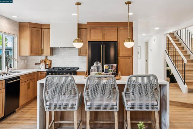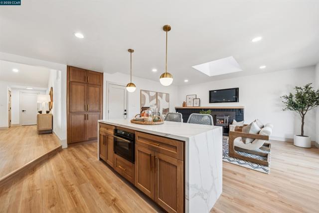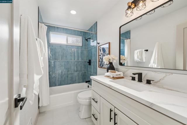 Beautifully remodeled 5-bedroom, 3-bathroom home with 2,309 sq ft of modern living space, ideally located next to Bishop Ranch—one of San Ramon’s most vibrant communities. Just minutes from City Center Bishop Ranch, top-rated schools, parks, dining, and commuter routes. Every inch has been thoughtfully updated with smooth skim-coated walls, two-tone paint, new doors and trims, luxury vinyl plank flooring, and designer tile in all bathrooms. The chef’s kitchen features natural oak shaker cabinets, quartz countertops with waterfall island, full-height backsplash, custom hood vent, and microwave drawer. Major system upgrades include new electrical, recessed lighting, ceiling fans, tankless water heater, HVAC, and dual-pane Low-E windows. The exterior offers new stucco, paint, rain gutters, garage door, and professional front and rear landscaping. Move-in ready with timeless finishes, this home blends luxury, comfort, and convenience—just steps from the best of Bishop Ranch living.