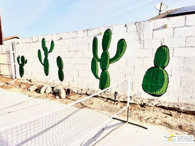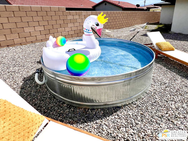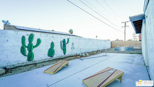 This beautifully maintained mid-century home in Desert Highland Estates features 3 bedrooms and 2 baths, plus a versatile 4th room that can be used as a den, office, or additional bedroom. The home exudes classic Palm Springs character and charm, with an updated kitchen and baths, modern finishes, and spacious interiors designed for comfort and convenience. Large windows bring in abundant natural light and create a warm, inviting atmosphere throughout, and the backyard offers ample room for outdoor entertaining with a cowboy tub, hammock, and porch swing for ultimate relaxation. The property includes leased Tesla solar panels, providing energy savings and reduced utility costs for both environmental and financial benefits; the buyer would assume the existing solar lease. Furniture and games are available for purchase outside of escrow, offering buyers the option of a move-in-ready setup or added value as a vacation rental.