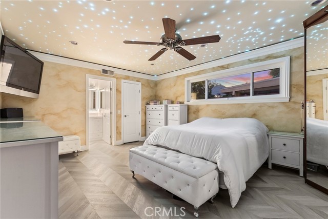 Welcome to this beautifully reinvented 4 bedroom, 3 bathroom home in the heart of West Hills. Featuring 1,918 sq ft of living space on a generous 8,906 sq ft lot of immaculate, taken care of landscaping, this residence has been thoughtfully updated from top to bottom with modern finishes and quality upgrades. The open floor plan offers a spacious living room, formal dining area, built-in kitchen dining nook, and a convenient laundry room off the kitchen. The oversized 2-car garage and large driveway provide parking for up to 6 cars along with abundant storage, while the expansive entertainer’s backyard is perfect for gatherings and outdoor living. Recent improvements include all new windows except one (2020), a new roof with radiant heat shield sheathing (2020), smooth stucco finish (2020), remodeled dining/fireplace room (2020), new HVAC ducting (2022), a fully remodeled primary bath and new primary flooring (2024), enlarged HVAC returns for higher efficiency (2024), two additional remodeled bathrooms (2025), and a new electrical panel (2025). Excellent storage inside and outside the home includes multiple deep closets and a waterproof outdoor built-in storage room. Located on a quiet street at a stop sign, this home enjoys the privacy and low traffic of a cul-de-sac without being on one. Designer details include fiber optic star light ceilings in three bedrooms, crown molding throughout, solid-core doors, and instant-on hot water in the bathrooms. With every detail carefully considered and updated, this move-in ready home offers the perfect combination of style, comfort, and functionality.