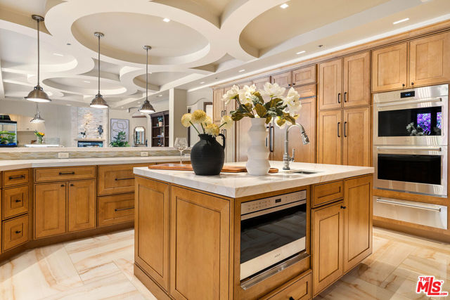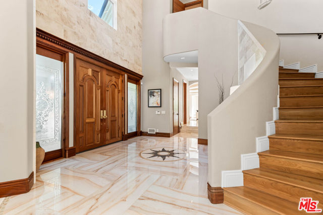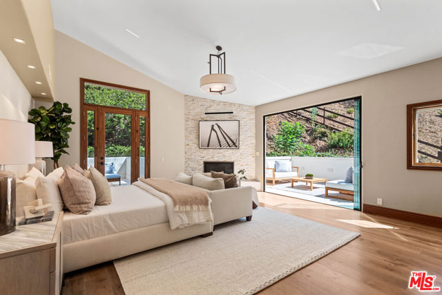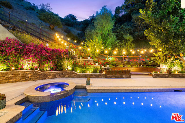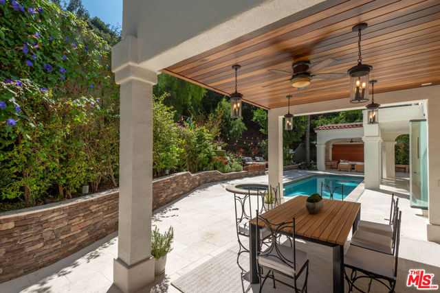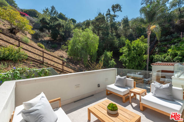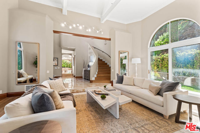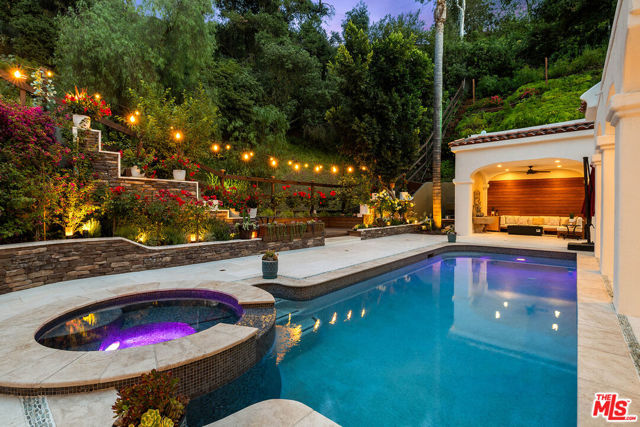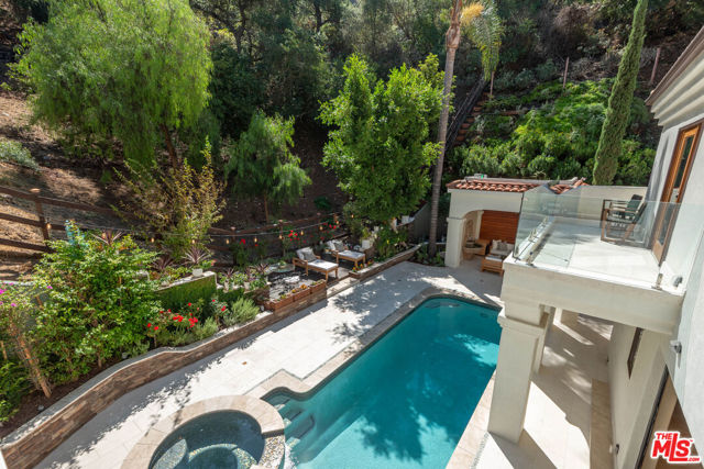 Step through the grand two-story entry with stunning chandelier, where soaring ceilings and architectural drama set the tone for the home. Adjacent living room invites both formal entertaining and intimate gatherings, while a conveniently located first-floor en-suite bedroom and private office offer comfort and flexibility for modern living. Upstairs, three additional generously proportioned en-suite bedrooms provide comfort and privacy. The primary suite is a true retreat, featuring expansive his-and-hers closets, dual private balconies, and a luxurious spa-inspired bath adorned with custom glasswork, a freestanding soaking tub, and a bidet. At the heart of the home, the chef’s kitchen is a true showpiece, outfitted with top-of-the-line appliances, expansive counter spaces enabling efficient preparations for groups both large and small. Designed for culinary artistry the kitchen connects directly to entertaining spaces including the pool, covered outdoor loggia and a stylish bar, perfect for lively elevated entertaining or effortless smaller gatherings. Privately gated and set on a secluded flag lot quietly well distanced from Coldwater Canyon Drive, this estate has been completely re-envisioned and masterfully re-constructed over a two-year transformation, offering a rare combination of privacy, seclusion, and modern sophistication. The grounds unfold into a completely private backyard sanctuary with lush gardens, curated landscaping, sparkling pool and spa, and outdoor kitchen. Multiple covered lounges and al fresco dining areas overlook an intimate live-performance stage with professional sound perfect for private concerts and unforgettable gatherings. Bordered by acres of natural terrain and wildlife, the property feels worlds away while remaining uniquely convenient to both Beverly Hills as well as the Valley, with seamless access to world-class amenities. This is more than a home – it is an unparalleled lifestyle, a sanctuary designed for those who seek beauty, privacy, and distinction.