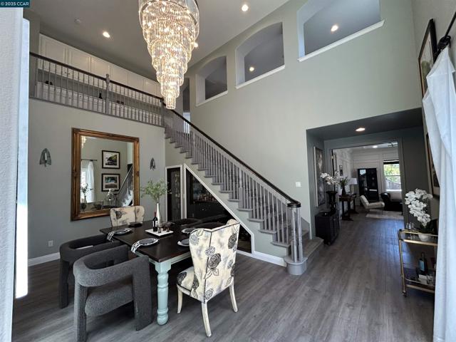 Welcome to an exceptional residence nestled within the highly sought-after Windermere community of San Ramon. This expansive 4,176 sq. ft. estate effortlessly combines timeless elegance with modern comfort, offering five generously sized bedrooms and three and a half impeccably designed bathrooms. Created for both refined living and elegant entertaining, the home boasts a chef’s kitchen adorned with premium finishes and high-end appliances—perfectly suited for culinary artistry. A bespoke wine cellar, thoughtfully tucked beneath the staircase, adds a sophisticated touch for the wine enthusiast. Step outside into a serene backyard retreat, ideal for intimate evenings or vibrant gatherings under the California sky. Set within a welcoming, family-friendly neighborhood and served by some of the top-rated schools in the nation, this residence offers more than just luxury—it offers a lifestyle of opportunity, connection, and enduring value. Experience the pinnacle of California living in a home where every detail has been carefully curated. Welcome home.