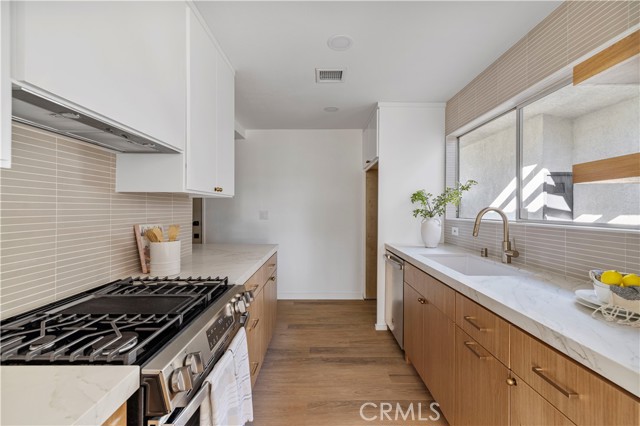 Stunning Mid-Century Modern Home in Highly Sought-After North Granada HillsrnWelcome to 12648 Darla Ave, a rare, fully reimagined 4-bedroom, 2-bathroom mid-century modern masterpiece offering luxurious living in one of the Valley’s most desirable neighborhoods.rnStep inside to discover a bright, open floor plan featuring a stylish living room with a floor-to-ceiling fireplace, elegant luxury vinyl flooring throughout, and large custom windows that fill the home with abundant natural light. The spacious family and dining rooms boast high vaulted ceilings, modern light fixtures, and a charming brick fireplace—creating the perfect setting for entertaining or relaxing in style.rnThe brand-new custom galley kitchen is a chef’s dream, showcasing high-end stainless steel appliances, quartz countertops, ample custom cabinetry, and a large walk-in pantry for added convenience. Adjacent to the kitchen, a dedicated laundry area offers additional storage and a new side-by-side washer and dryer set.rnThe inviting family room overlooks the beautifully landscaped backyard, ideal for gatherings, lounging, and taking in exquisite valley views. Off the kitchen, a potential fifth bedroom offers flexibility for guests, a home office, gym, or additional living space. Each of the four main bedrooms is generously sized with large closets, while the primary suite serves as a relaxing retreat with a sliding glass door leading to the backyard, allowing for easy access and abundant sunlight. Both bathrooms have been meticulously remodeled with designer finishes.rnEvery detail of this home has been thoughtfully curated with modern luxury and timeless design in mind—truly a showstopper property. A spacious two-car garage with direct access provides everyday convenience.rnLocated within the prestigious Granada Hills Charter School district and close to shopping, dining, and major freeways, this exceptional home perfectly blends style, comfort, and location.rnWelcome home to 12648 Darla Ave—where mid-century charm meets modern sophistication.